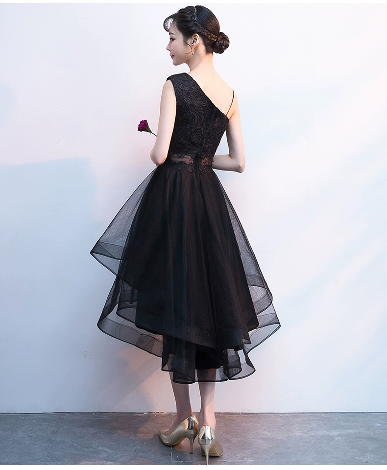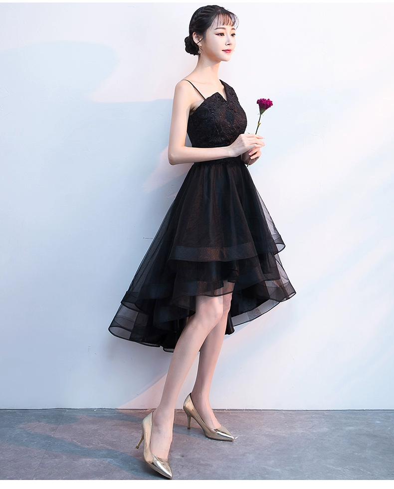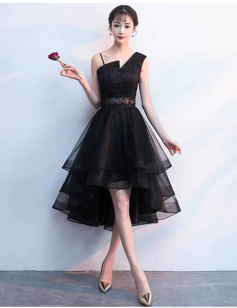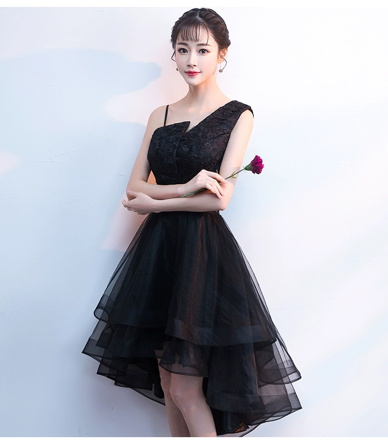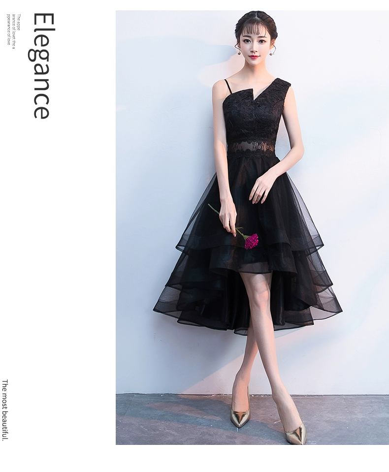 Fleepmart Robe de soiree New Black Elegant Sleeveless lace vestido de festa evening dress Short Front Long Back Party Dresses Prom dresses