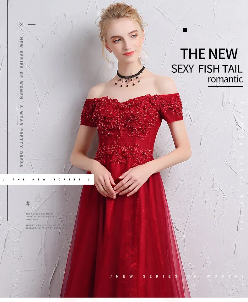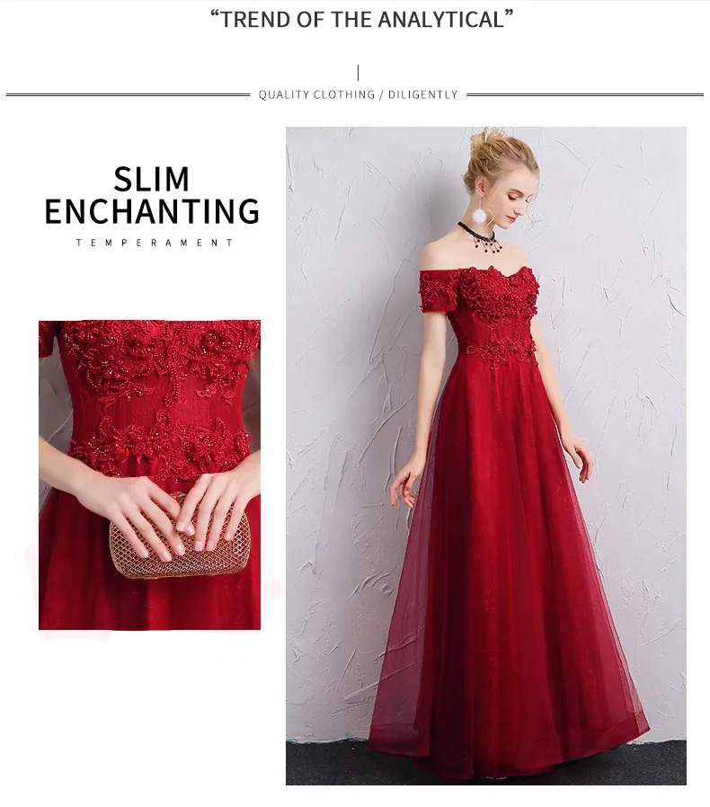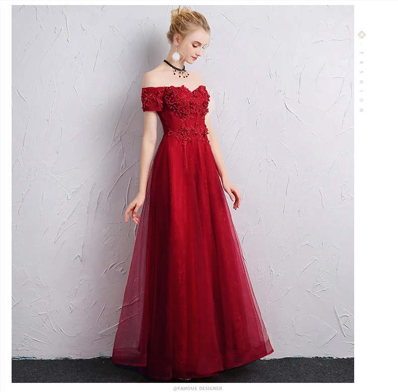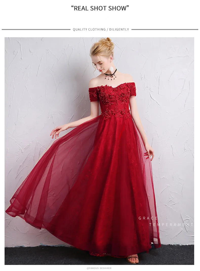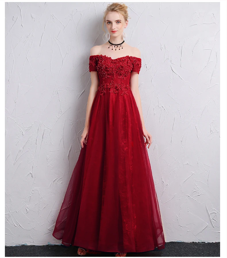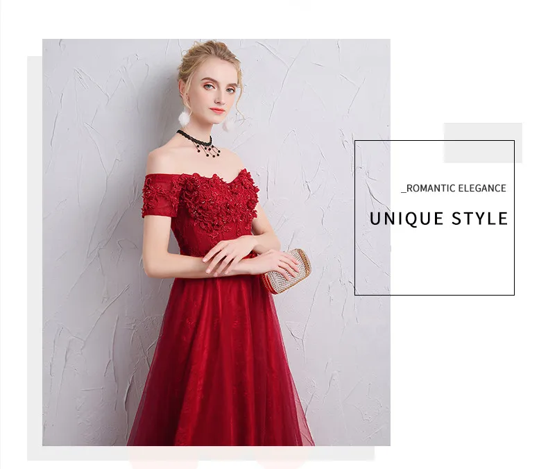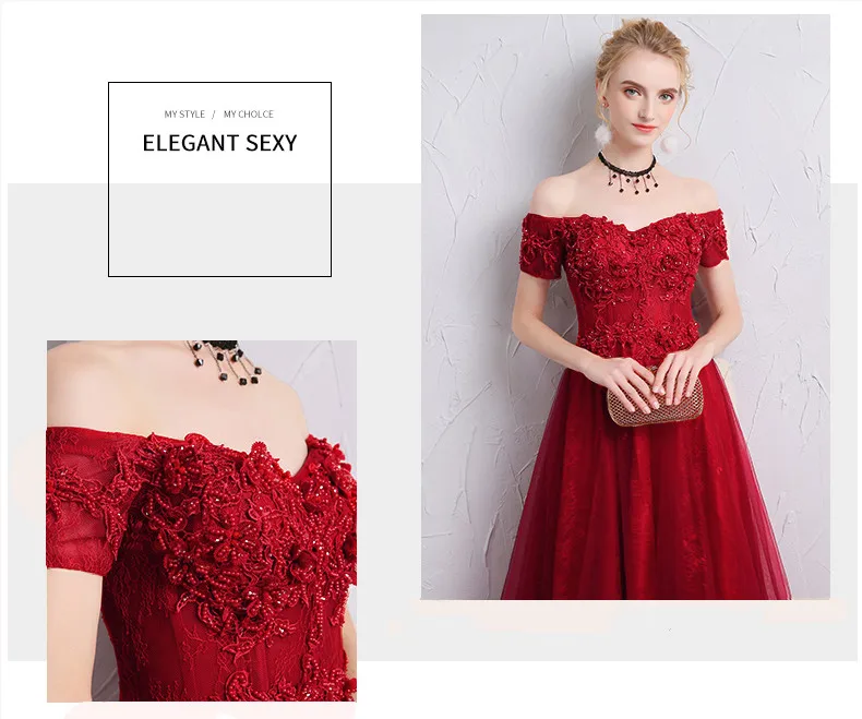 Fleepmart Robe de soiree New Boat Neck Beading with Appliques Long Evening Dresses Elegant Lace vestido de festa Banquet Party Prom dress