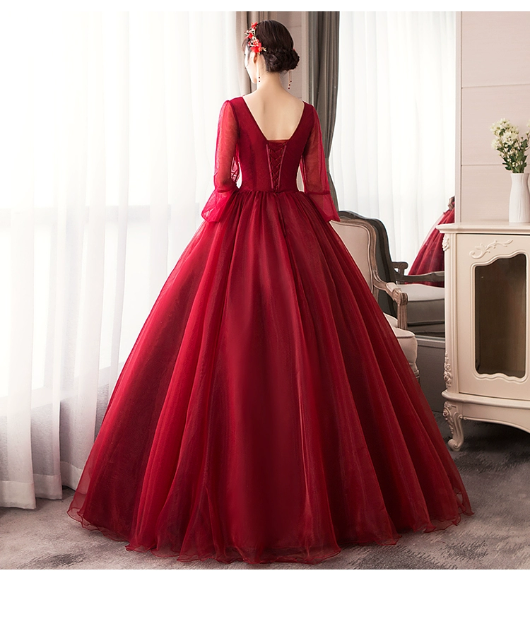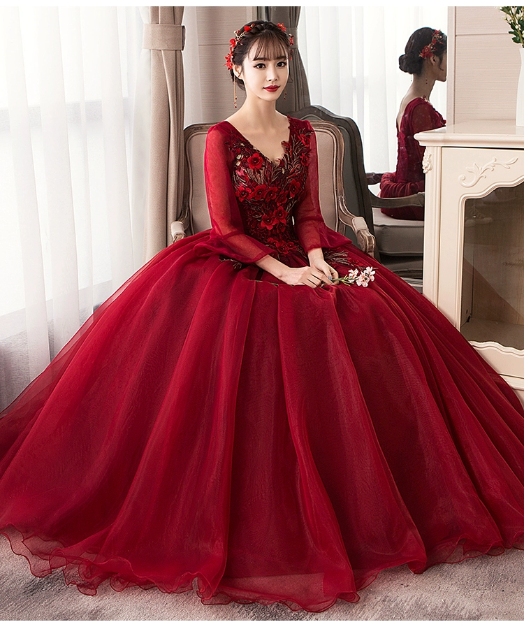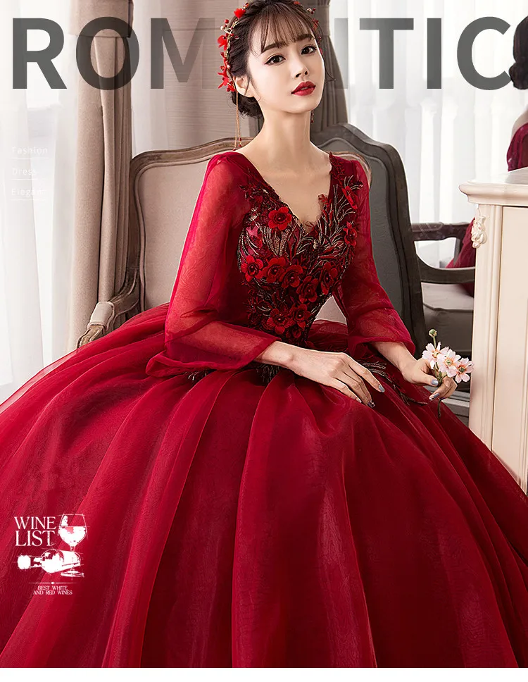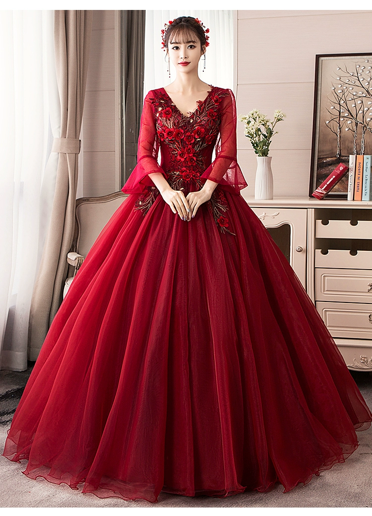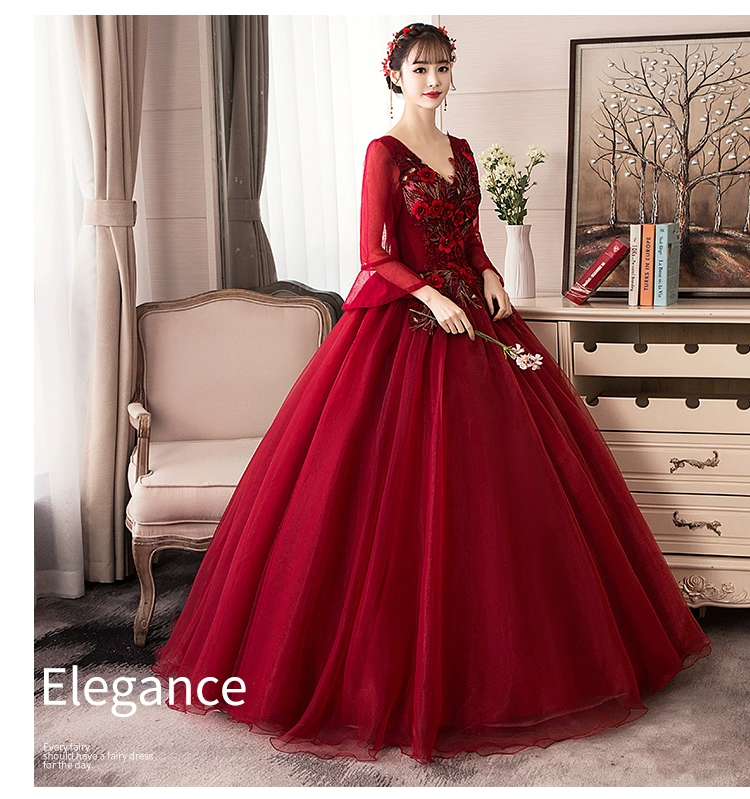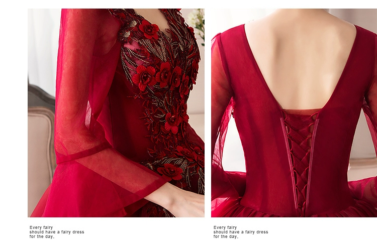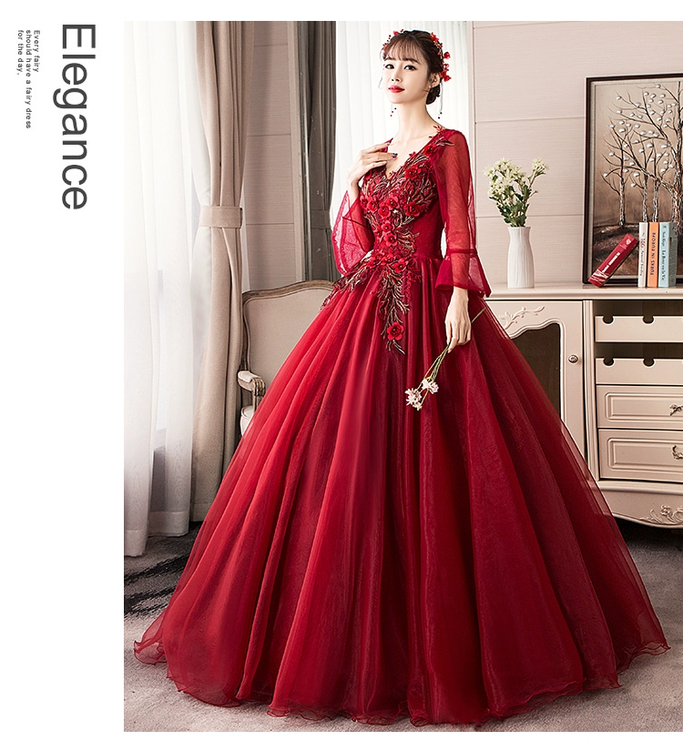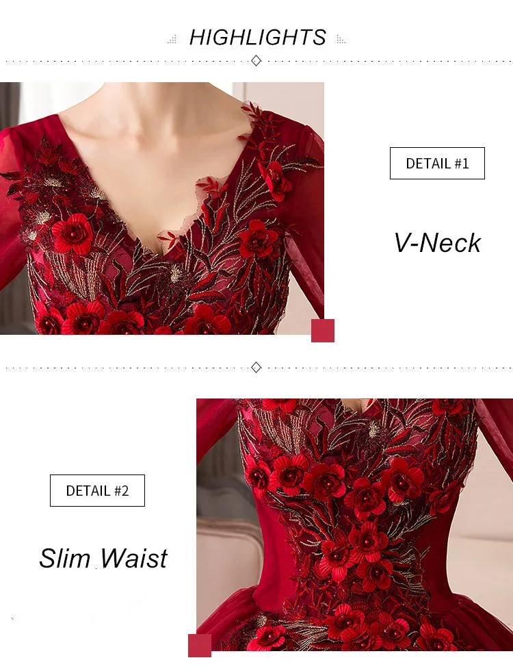 Fleepmart Robe de soiree New Wine Red Lace V-Neck Beading Luxury Long ball gown Evening Dress Famous Appliques Flowers Party Formal Dress