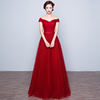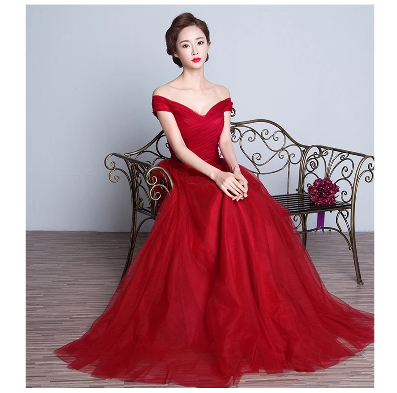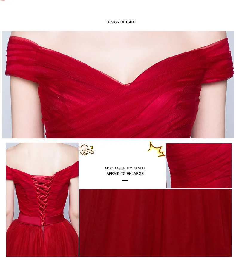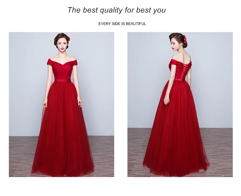 Fleepmart Robe de soiree Wine Red Floor Length Party Gowns evening dress Tulle Boat Neck Women vestido de festa Prom Dresses Custom Made