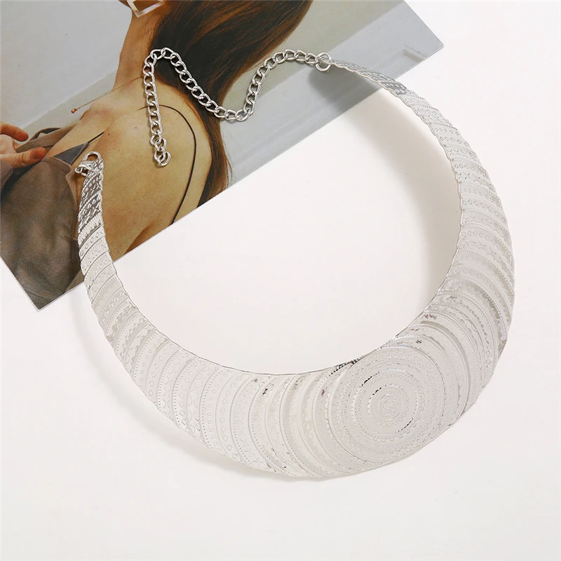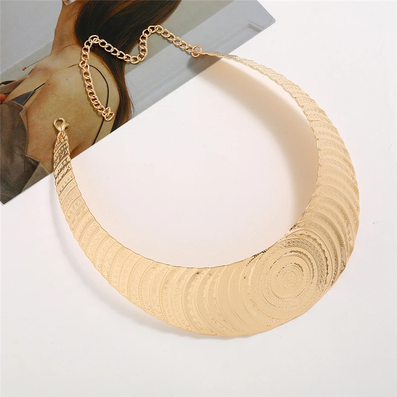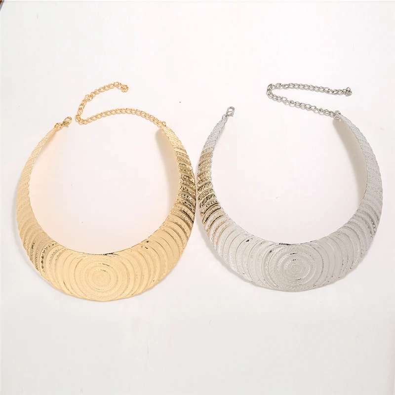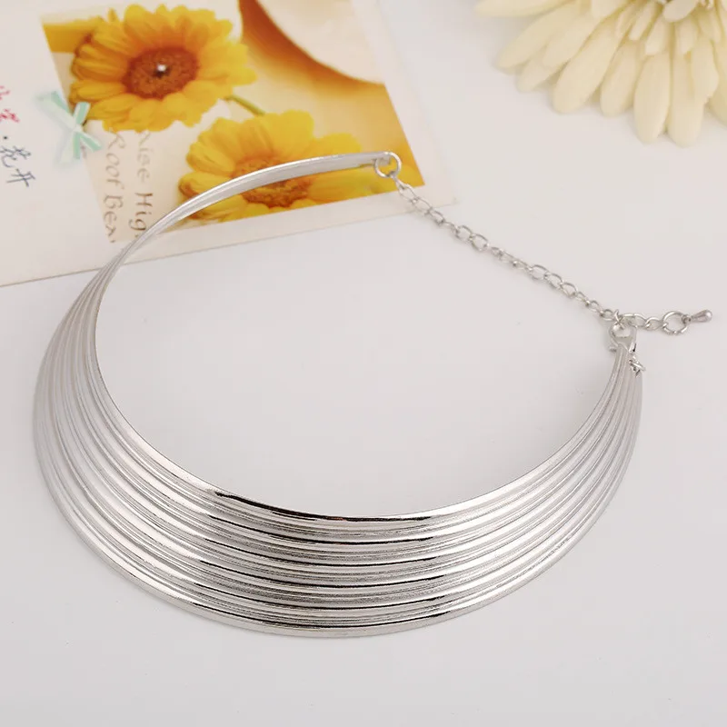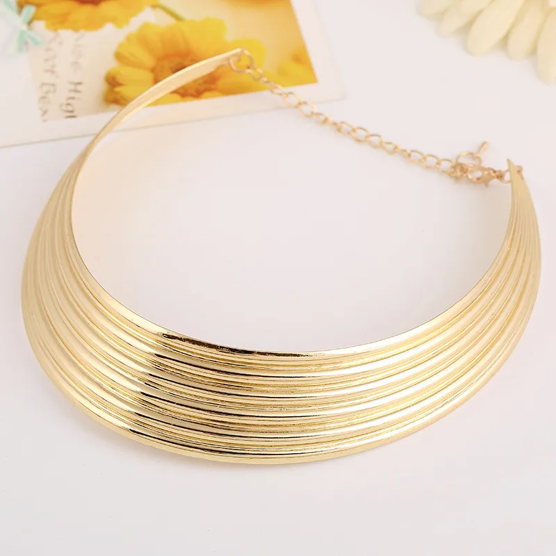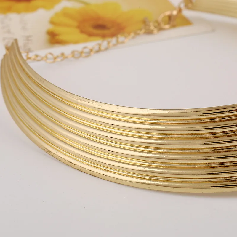 Fleepmart Rock Personality Stripe Choker Statement Necklace Women 2022 Wide Metal Punk Clavicle Collar Trendy