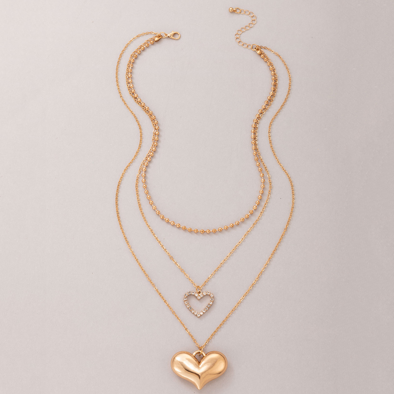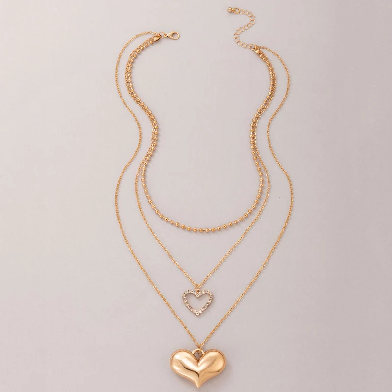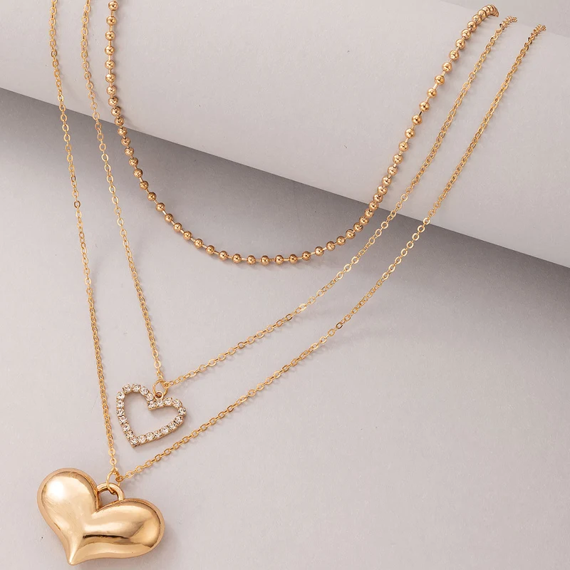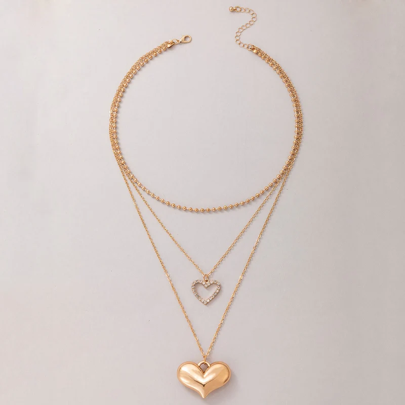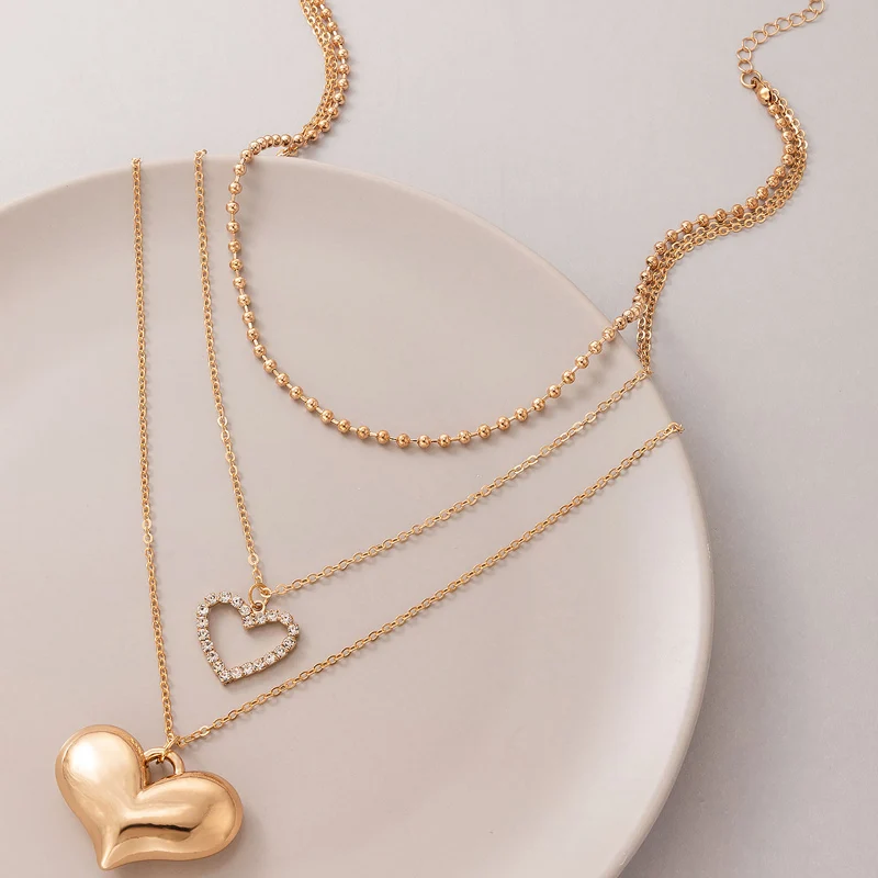 Fleepmart Romantic Heart Pendant Neckalce for W omen Luxury Crystal Stone Multi-layer Geometry Alloy Metal Party Jewelry Collar