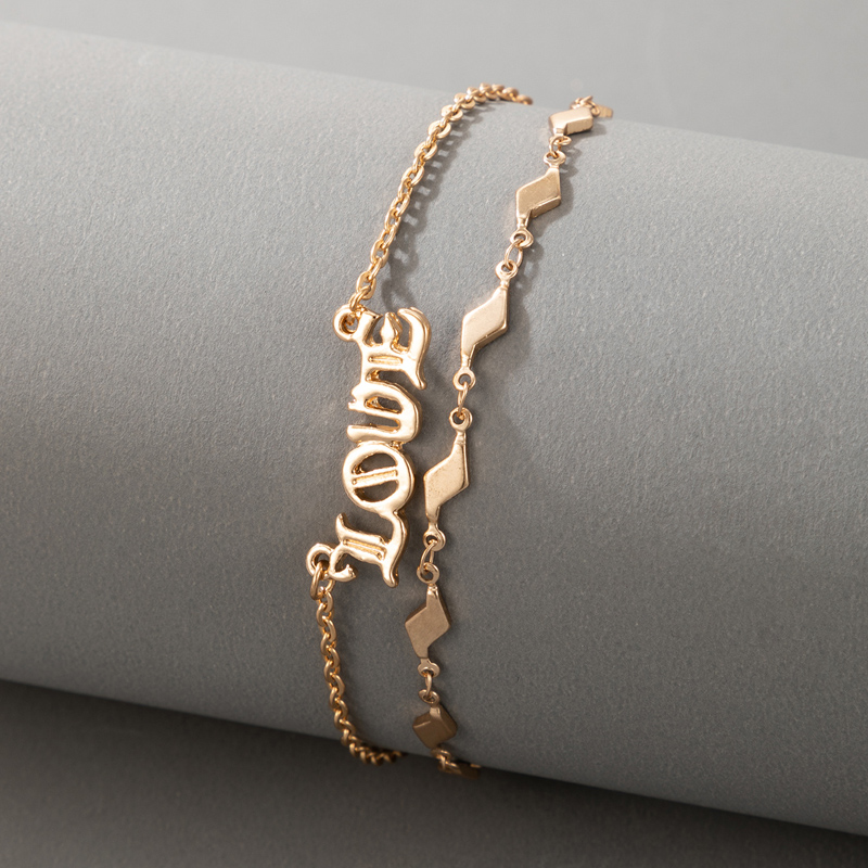 Fleepmart Romantic Love Gold Color Bracelets for Women New Trendy Letter Alloy Metal Adjustable Valentine's Day Jewelry Gift