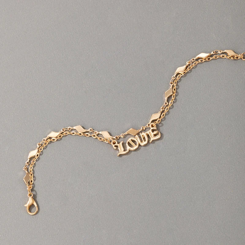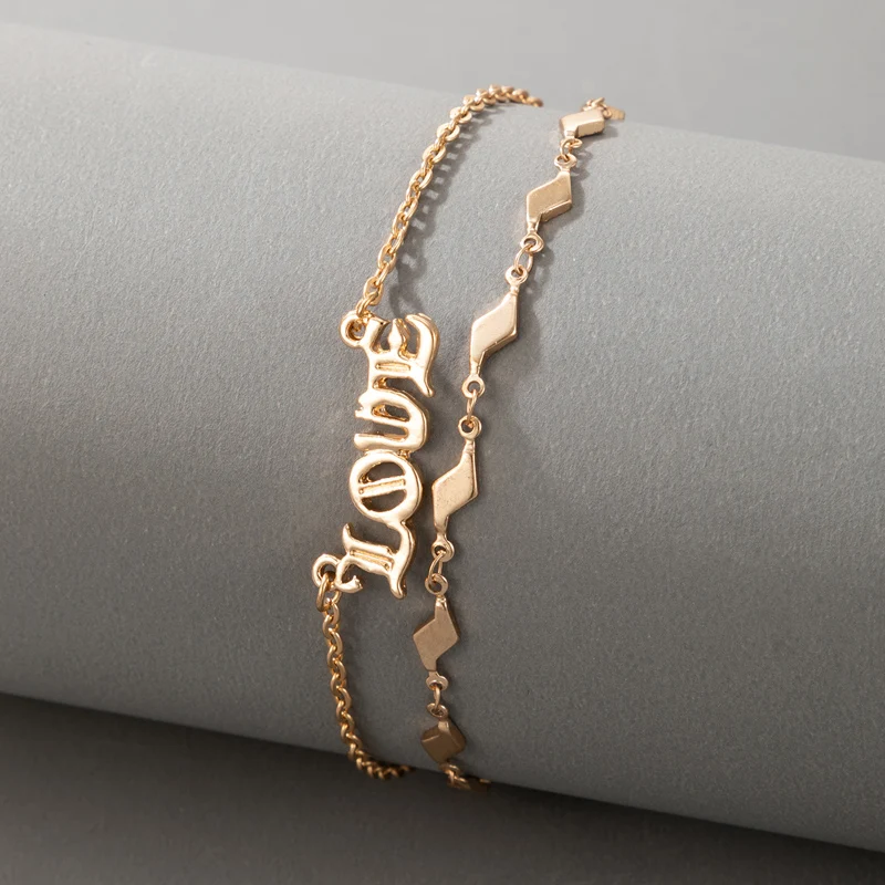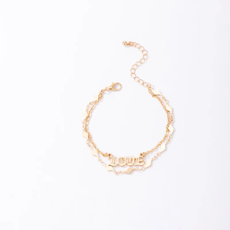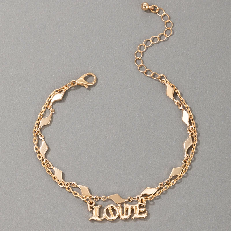 Fleepmart Romantic Love Gold Color Bracelets for Women New Trendy Letter Alloy Metal Adjustable Valentine's Day Jewelry Gift
