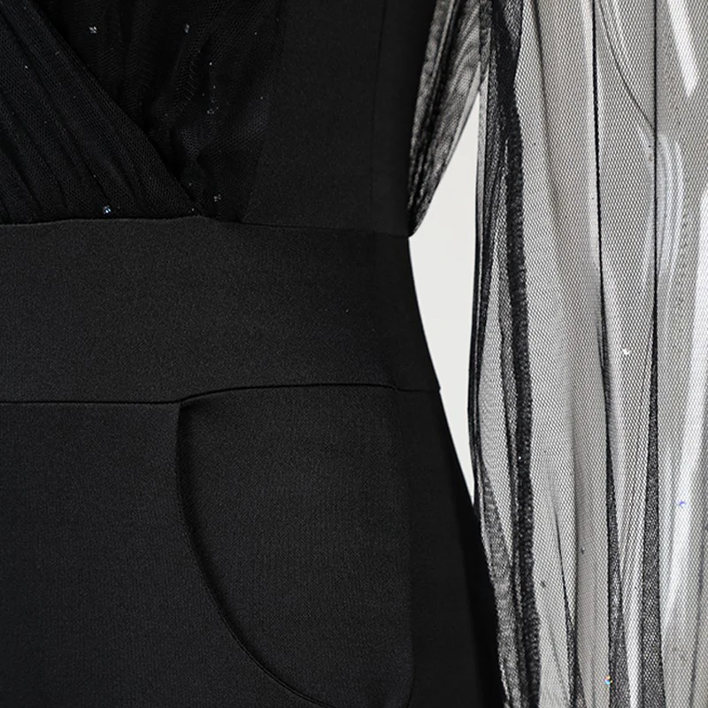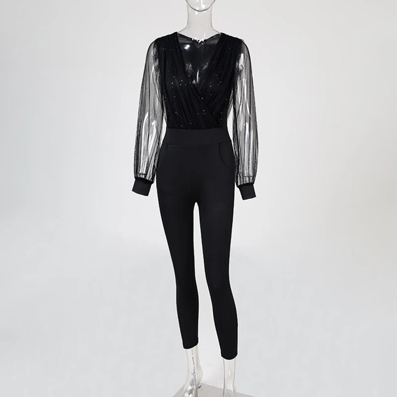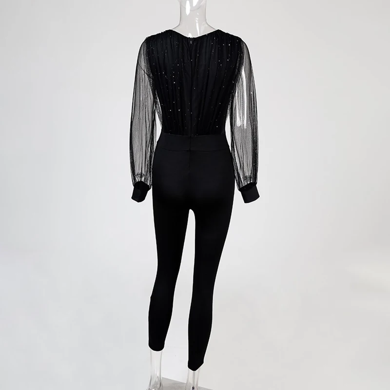 Fleepmart Rompers Womens Jumpsuit Black Elegant Sequins Mesh Glitter Party Night Sexy 2022 Spring Long Pants One Piece Clothes Overalls