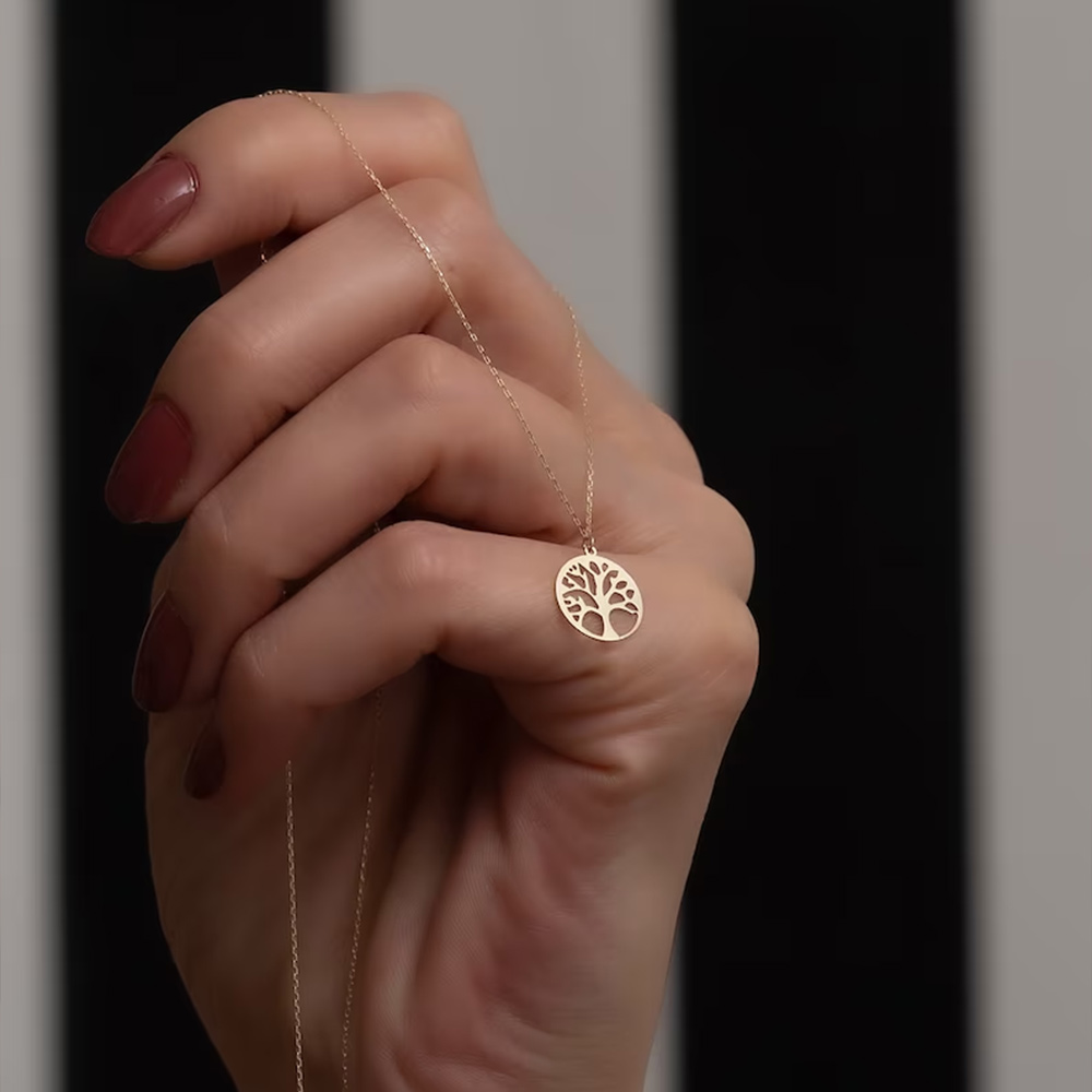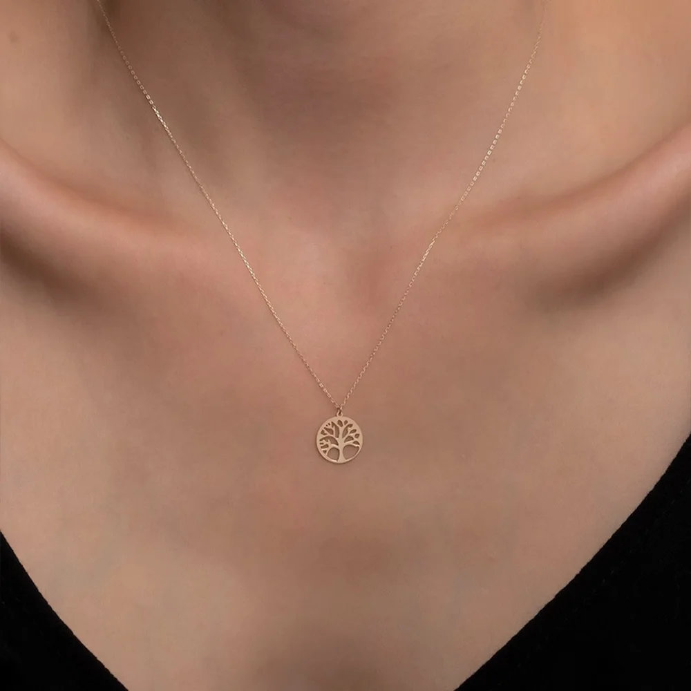 Fleepmart Round Tree of Life Pendant Necklace Stainless Steel Metal Necklaces Classic Hollow Design Charm Jewelry Men Women Birthday Gift