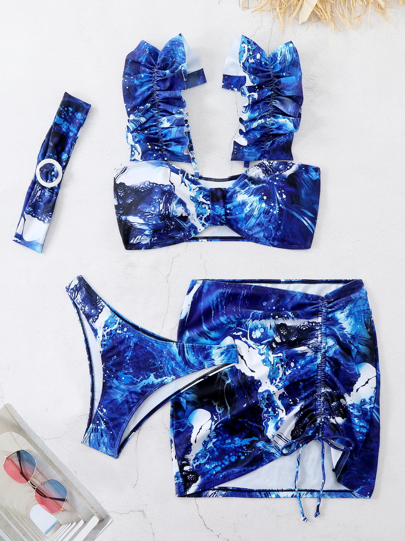 Fleepmart Ruffle Halter Bikini Set Lace-up Thong Hip Wrapped Skirt Women’s Swimsuit Sexy Beachwear Summer Bathing Suit