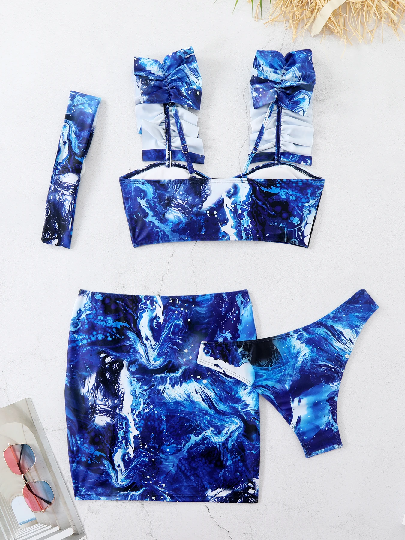 Fleepmart Ruffle Halter Bikini Set Lace-up Thong Hip Wrapped Skirt Women’s Swimsuit Sexy Beachwear Summer Bathing Suit