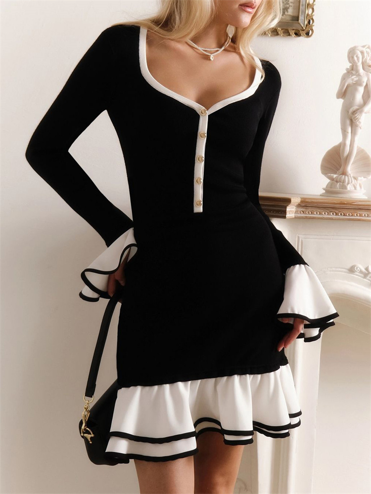Fleepmart Ruffled Backless Tee Bow Mini Slim High Waist Elegant Party Clothes Summer Dress 2025