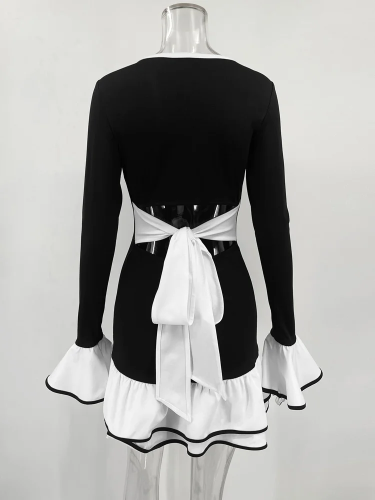 Fleepmart Ruffled Backless Tee Bow Mini Slim High Waist Elegant Party Clothes Summer Dress 2025