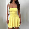 Fleepmart Ruffled Bodycon Beach Dress For Women High Waist Slim Mini Dress Ladies Holiday Casual Off Shoulder Sexy Dress Woman 2024