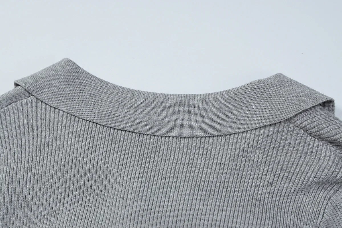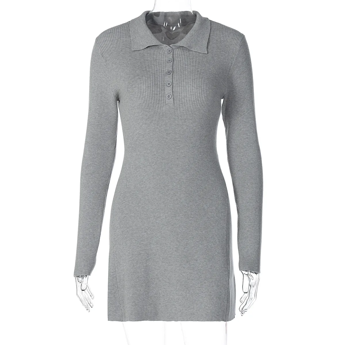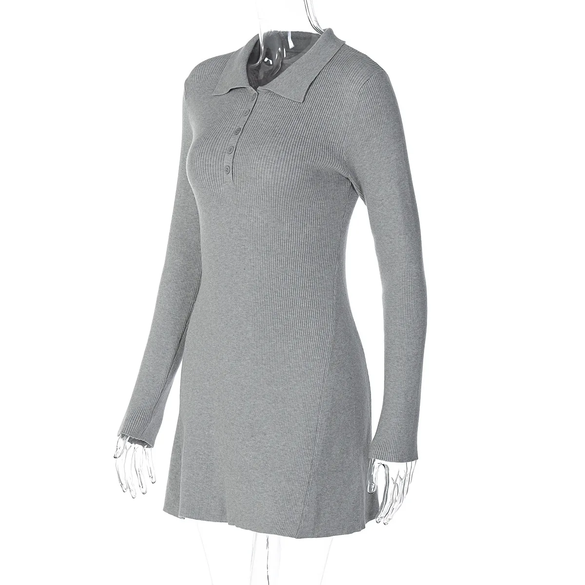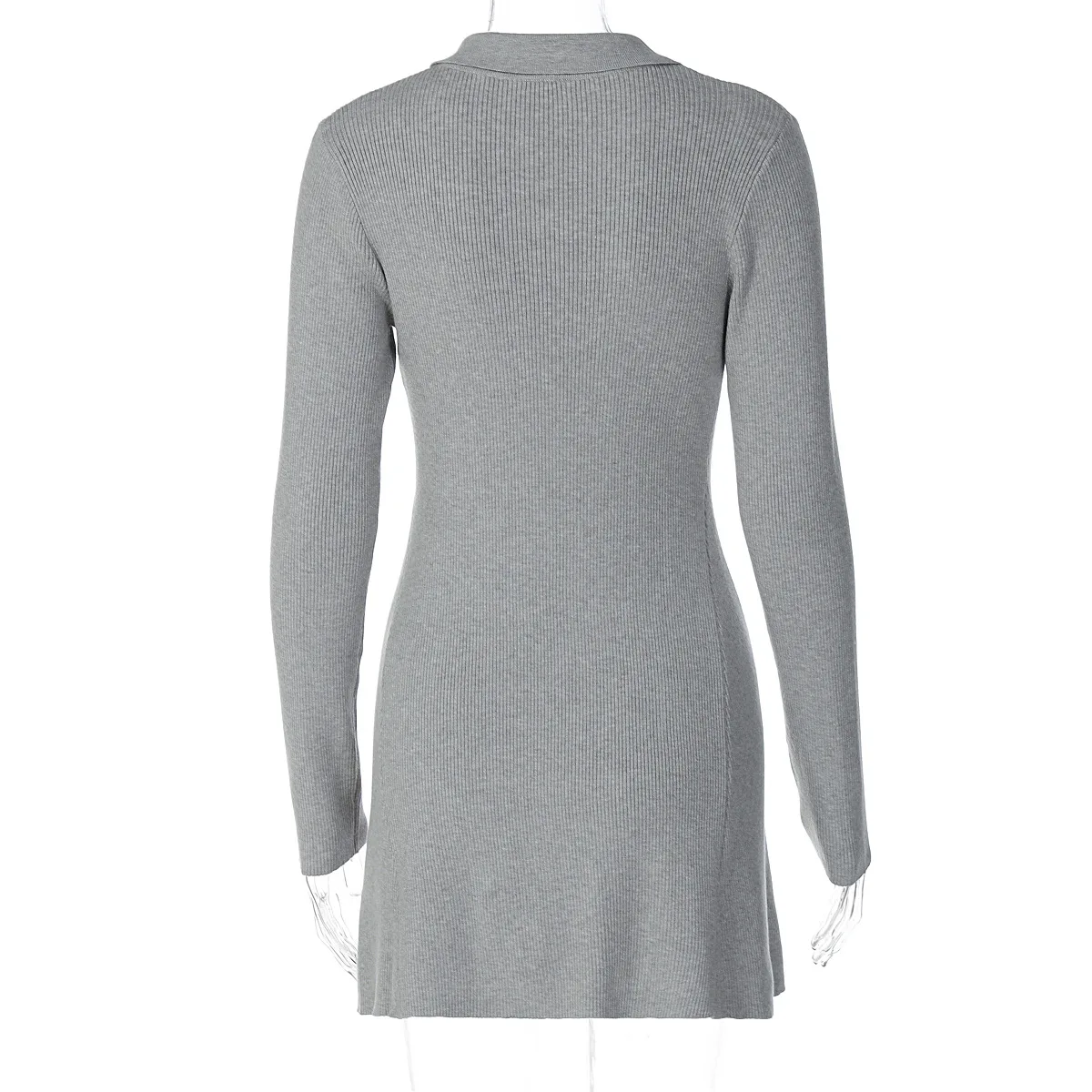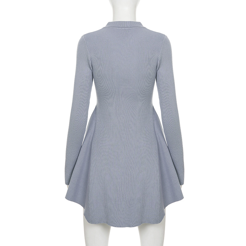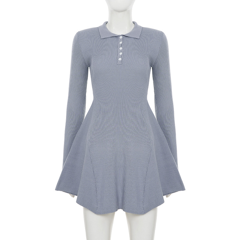 Fleepmart Ruffled Knitted Dresses for Women Lapel Fashion High Waist Long Sleeve Mini Dress A-line Retro Casual Sweater Dress