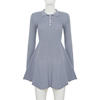 Fleepmart Ruffled Knitted Dresses for Women Lapel Fashion High Waist Long Sleeve Mini Dress A-line Retro Casual Sweater Dress