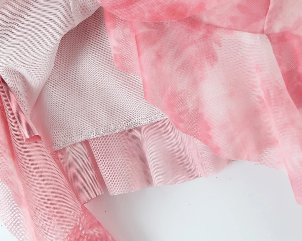 Fleepmart Ruffles Tierred Pink Mesh Party Dress Set Sexy Summer Spring Bodycon New in Matching Sets Backless Beach Occasion Set