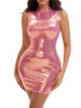 Fleepmart [Runs Small] Women’s Nightclub See-Through Women’s Gold-Stamped Tight Dress, Fashionable High Collar Sleeveless Mini Dress