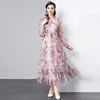 Fleepmart Runway Design Autumn New Cascading Ruffles Mesh Dress for Women Sweet Pink Floral Print Long Sleeve Slim Long Party Robes