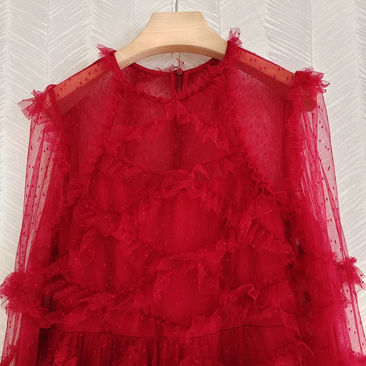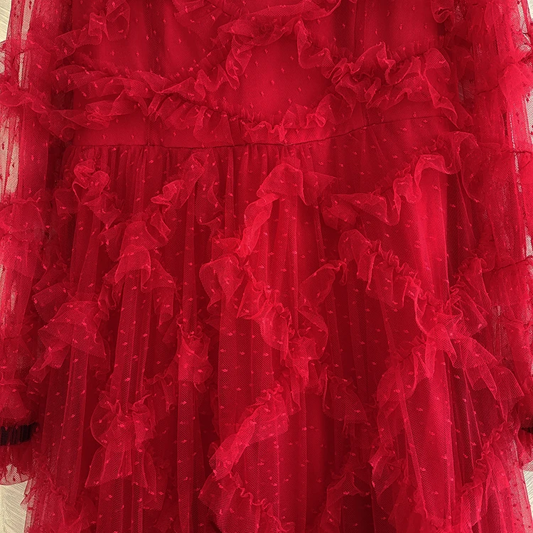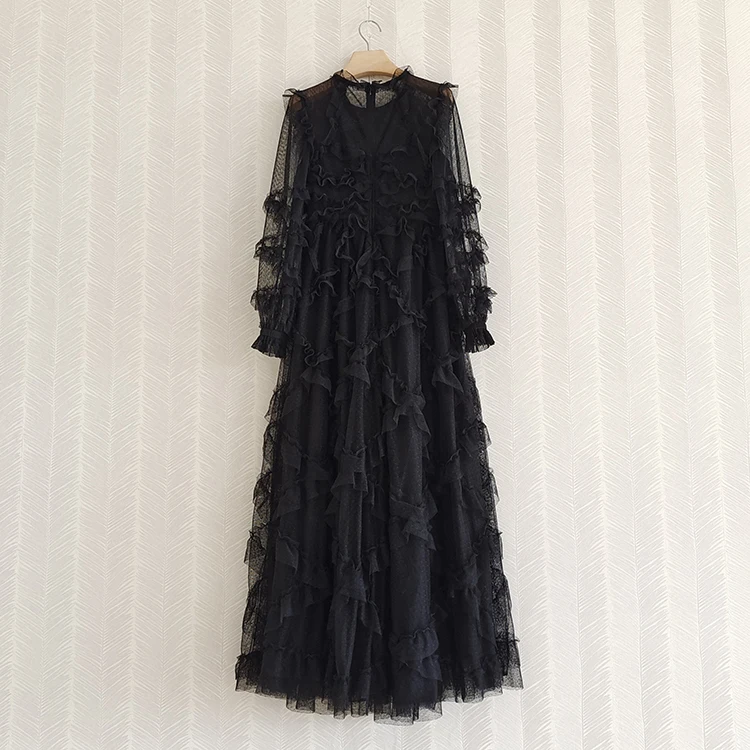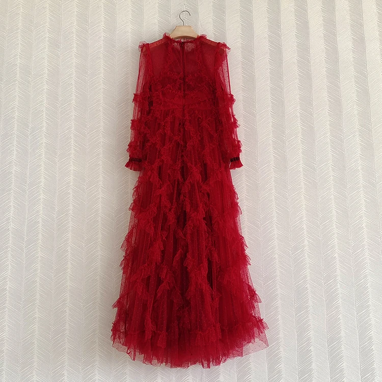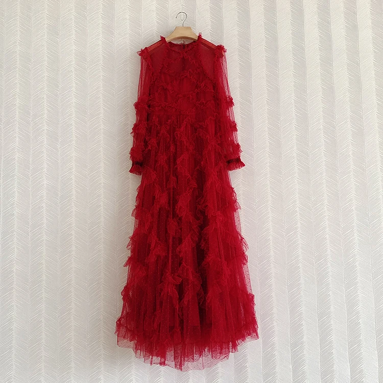 fleepmart Runway Fashion Layered Tulle Dress Long Sleeve Spring Autumn 3D Ruffles Elegant Extra Puffy Ball Gown Prom Party Dresse