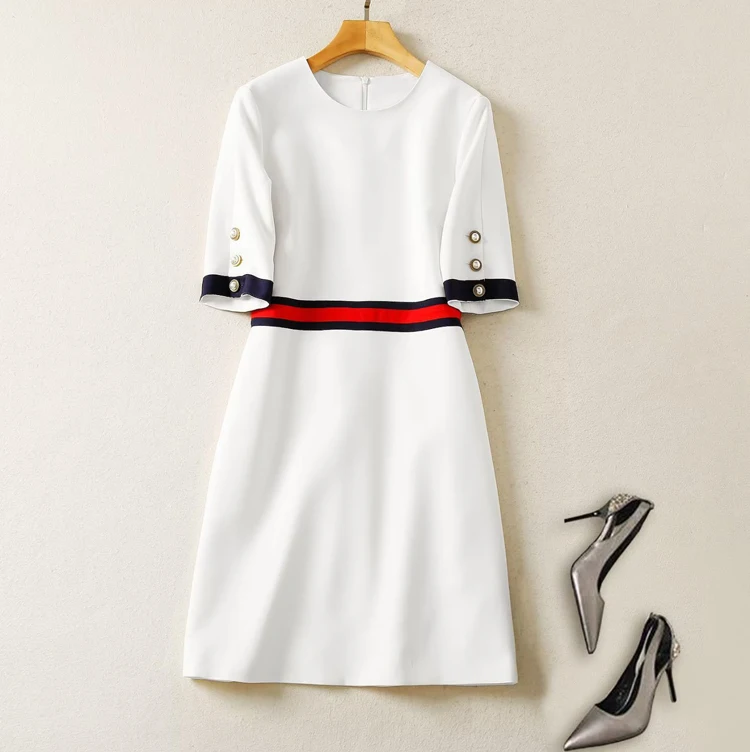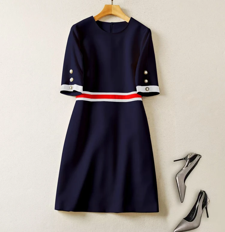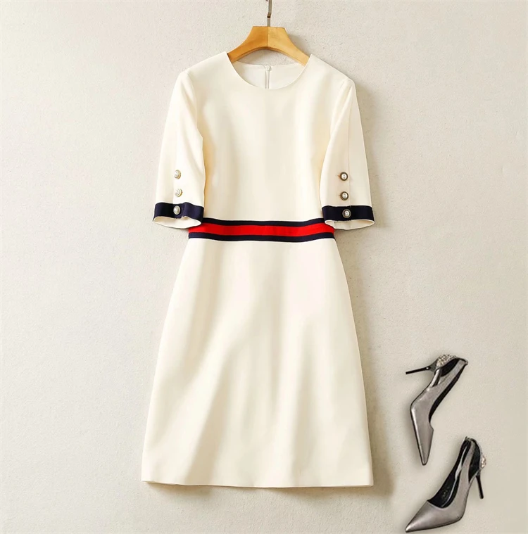 Fleepmart Runway New Designer Summer High Quality Women’s Fashion Slim Short Sleeves Button Elegant Casual Celebrities Office Party Dress