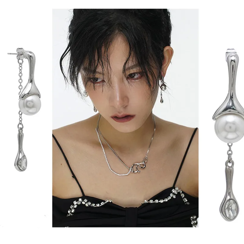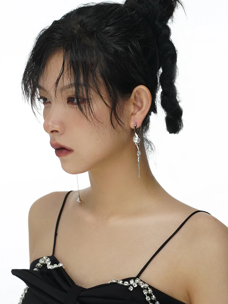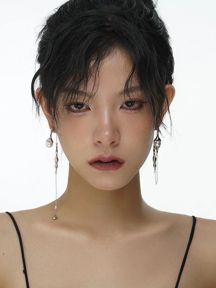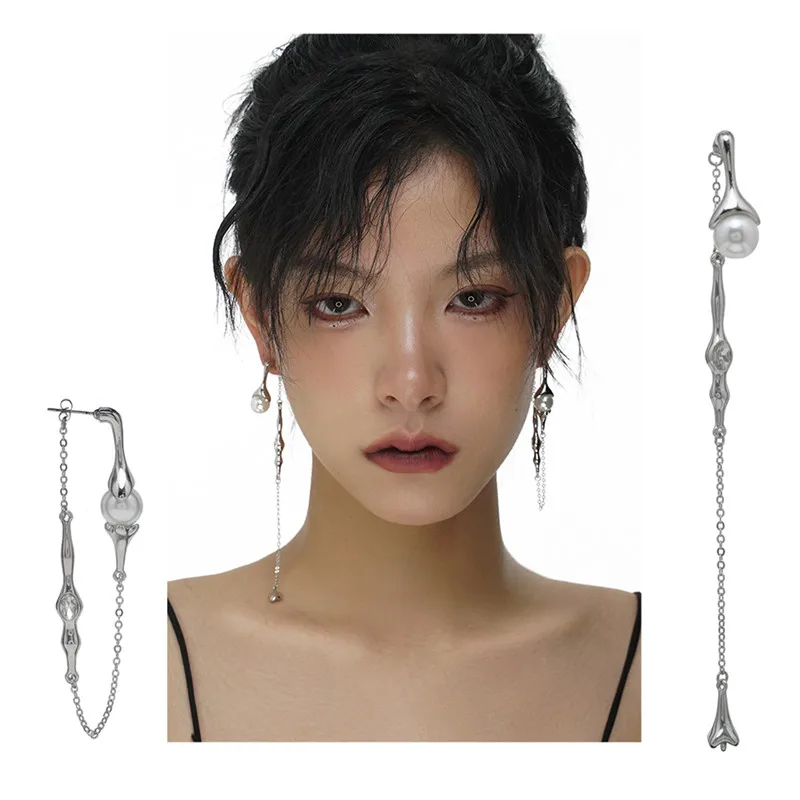 Fleepmart S925 Needle Punk Long Tassels Pearl Drop Earrings For Women Personality Hyperbole Earrings 2022 New Jewelry Gift