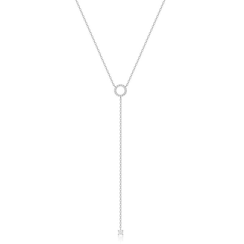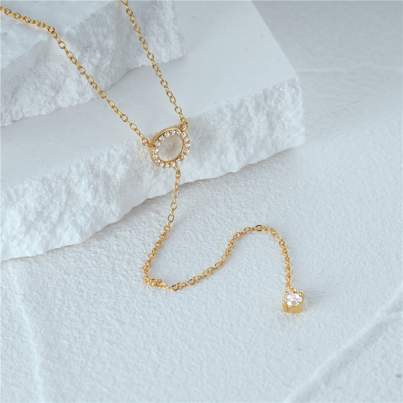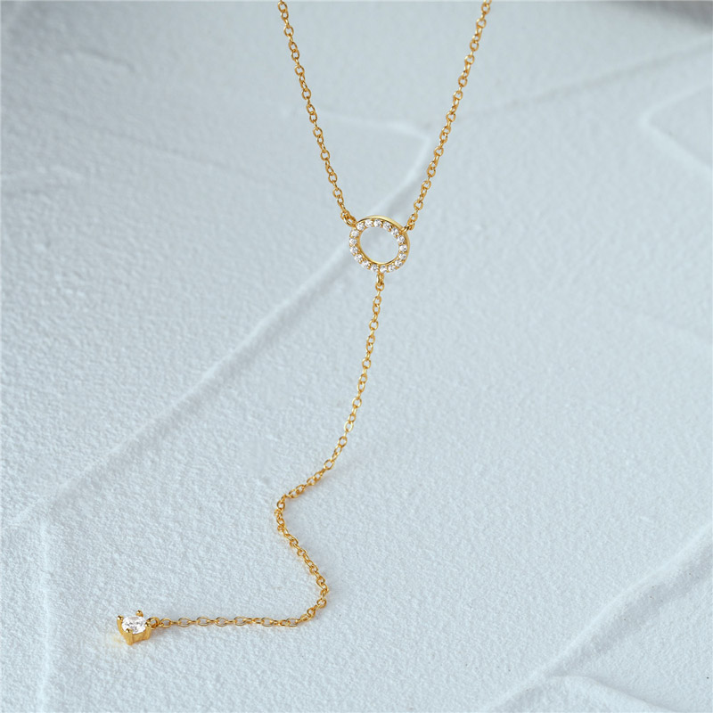 Fleepmart S925 Sterling Silver Double-Deck Circle Zircon Pendant Long O-Chain Choker Necklace 2024 Spring Women Wedding Fine Jewelry