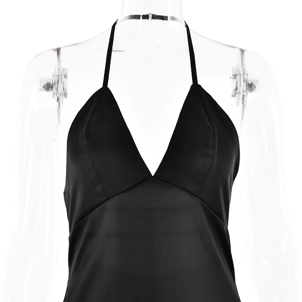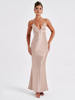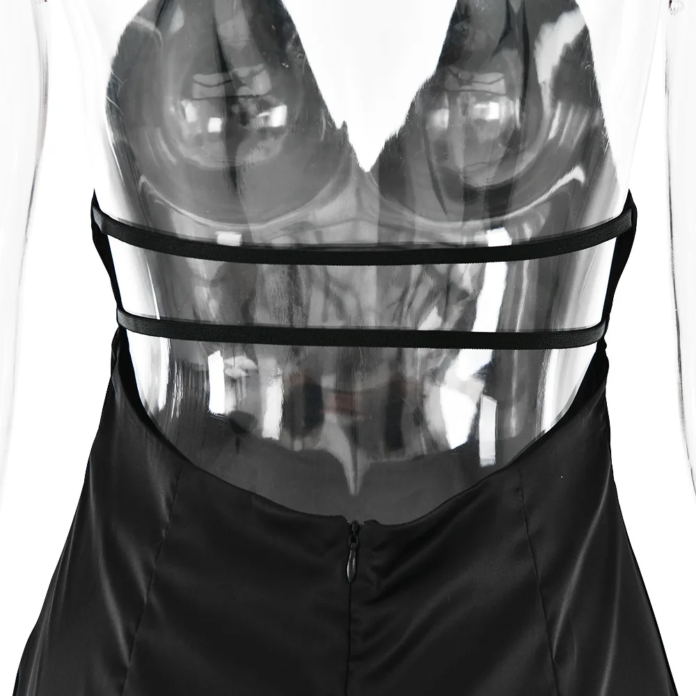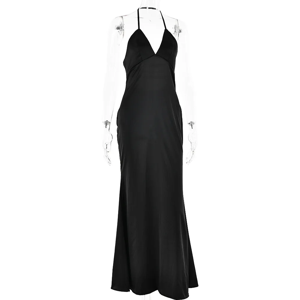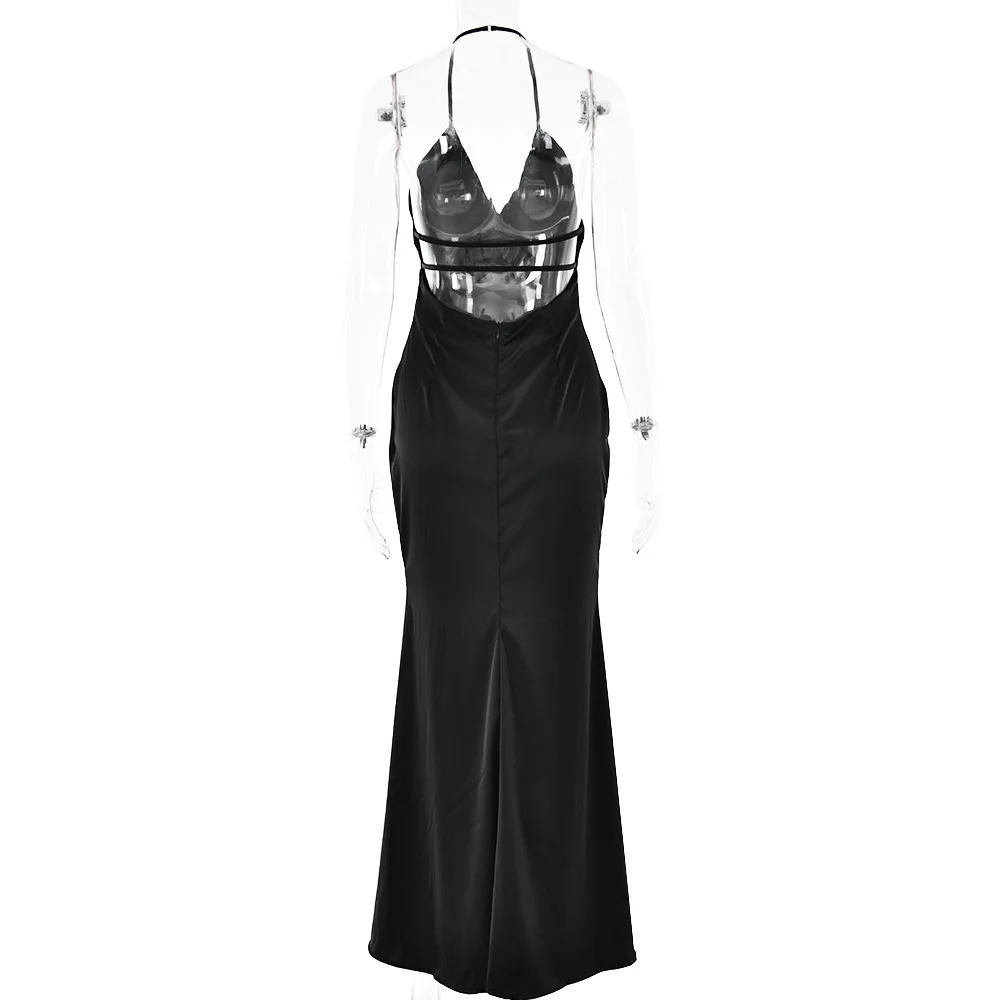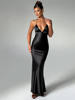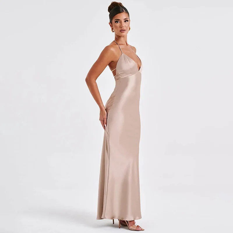 Fleepmart Satin Backless Party Maxi Dress For Women Spaghetti Strap Sleeveless Feathers Bodycon Long Dress Vestido Clubwear