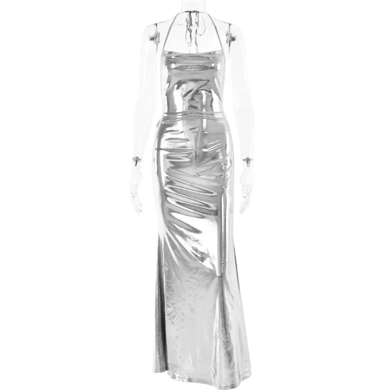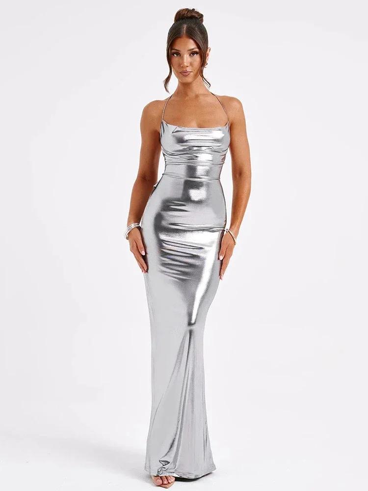 Fleepmart Satin Backless Sexy Maxi Dress for Women Fashion Spaghetti Strap Solid Bodycon Long Dress Femme Club Party Long Dress