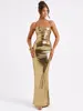 Fleepmart Satin Backless Sexy Maxi Dress for Women Fashion Spaghetti Strap Solid Bodycon Long Dress Femme Club Party Long Dress