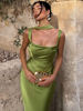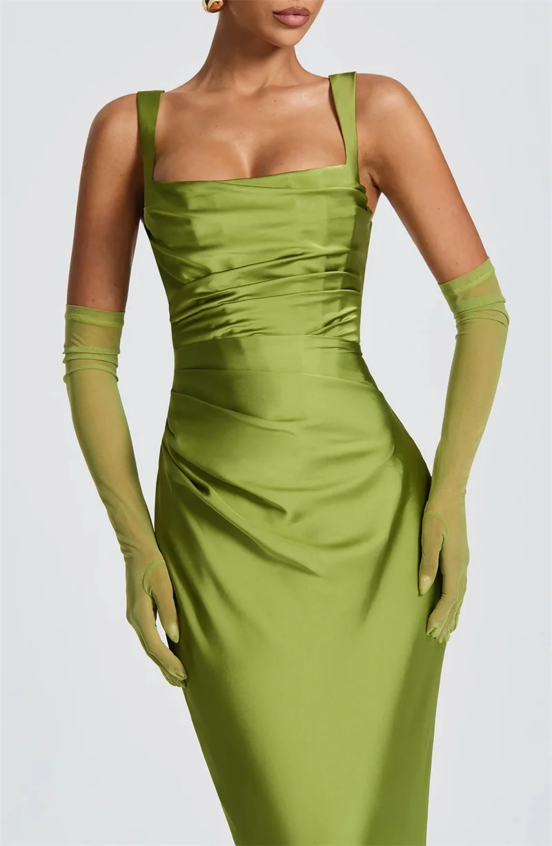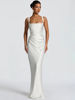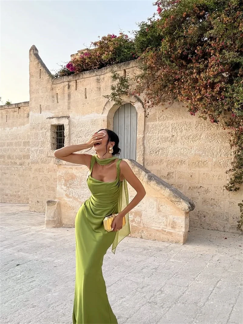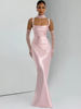 Fleepmart Satin Backless Sexy Maxi Dress Women Elegant Halter Off-shoulder Sleeveless Lace-up Bodycon Club Party Long Dresses