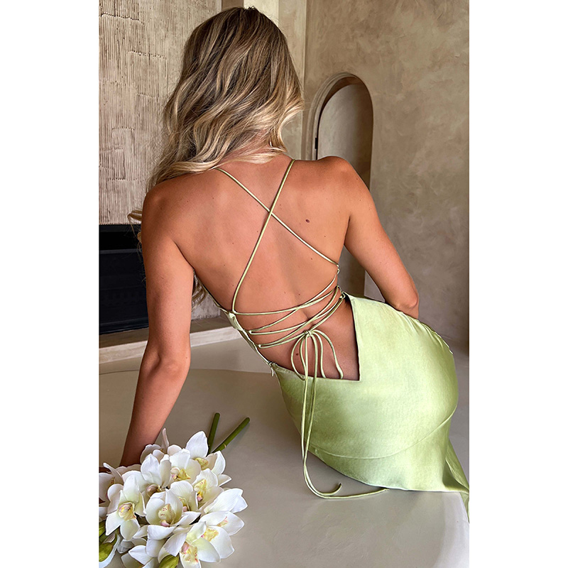 Fleepmart Satin Sexy Backless Ankle Length Dress High Split Sleeveless Elegant Party Dresses For Women 2023 Prom Formal Evening