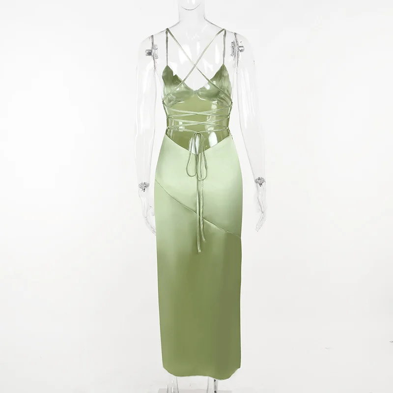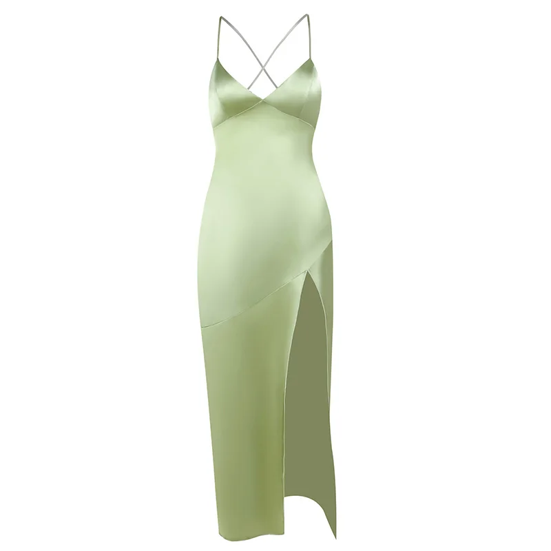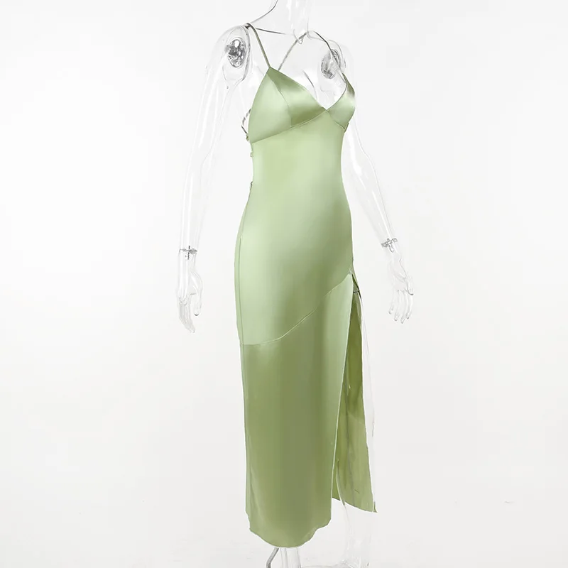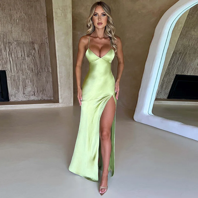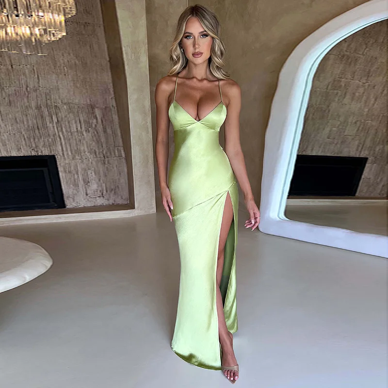Fleepmart Satin Sexy Backless Ankle Length Dress High Split Sleeveless Elegant Party Dresses For Women 2023 Prom Formal Evening