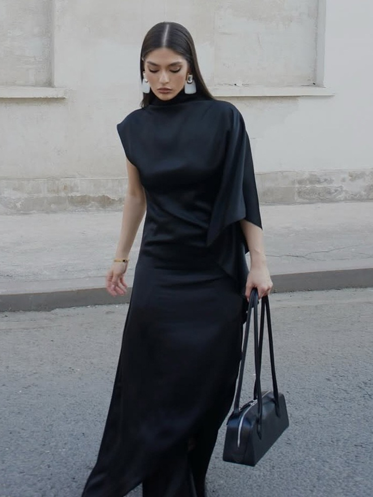 Fleepmart Satin Sleeveless Irregular Sexy Maxi Dress Women Fashion Turtleneck Party Long Dresses Female Elegant Club Long Dresses