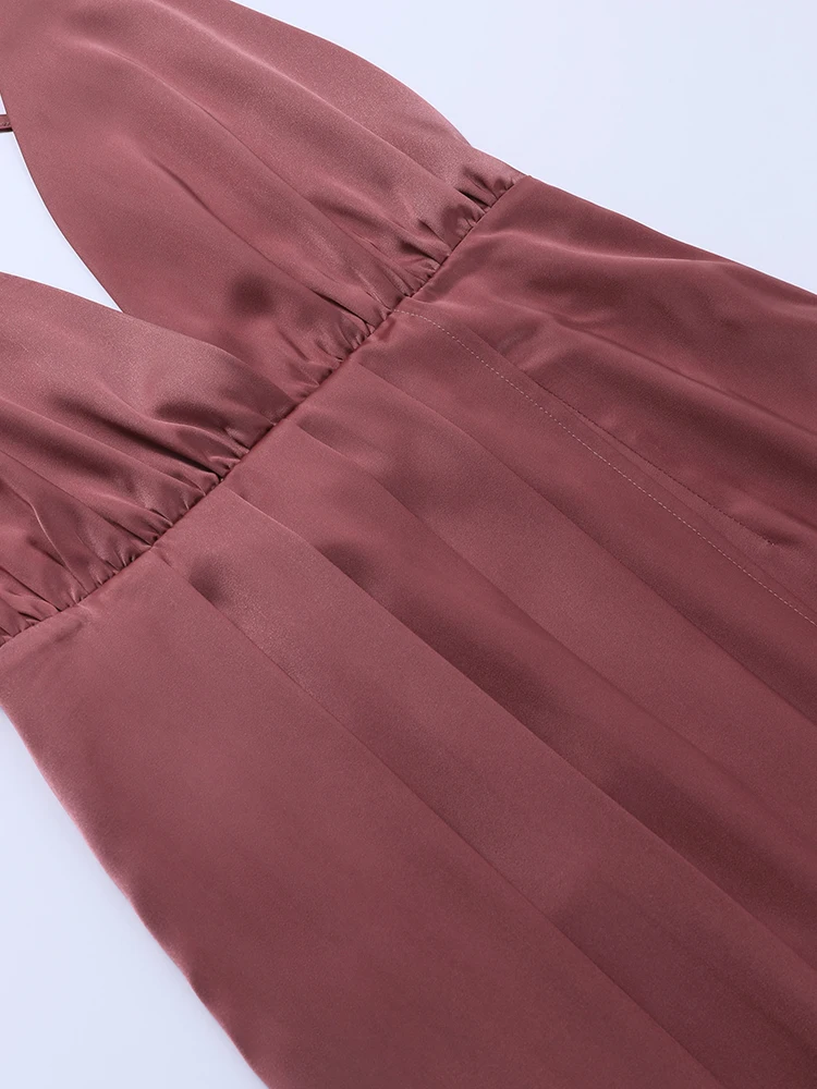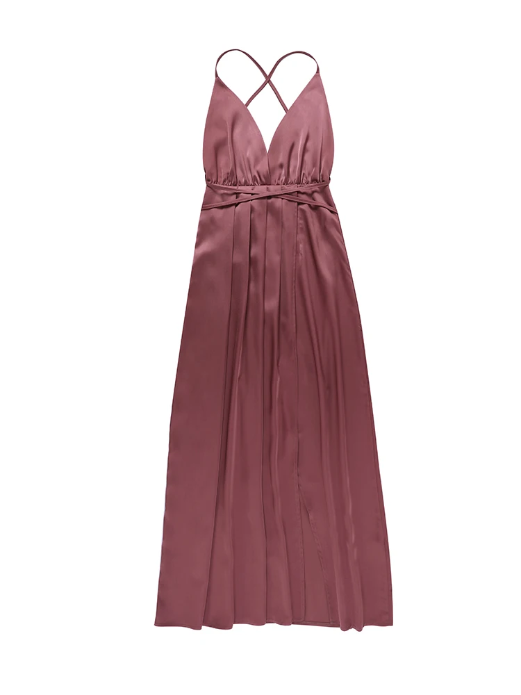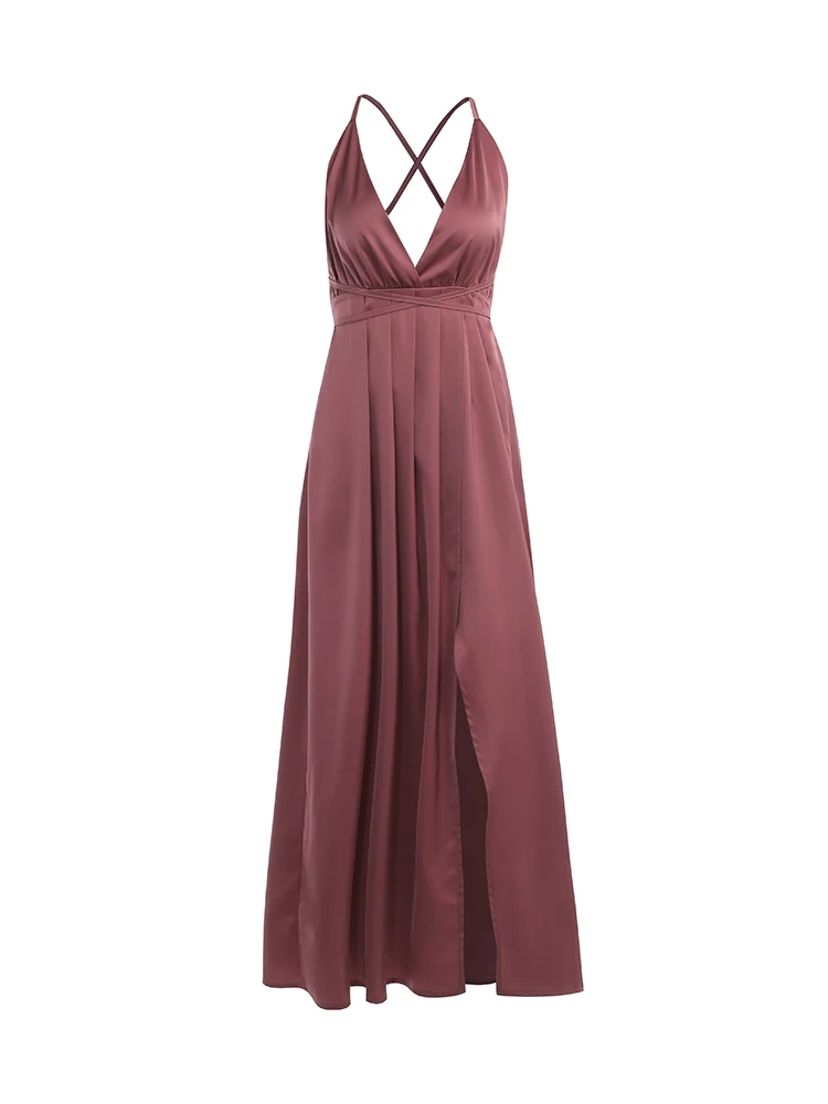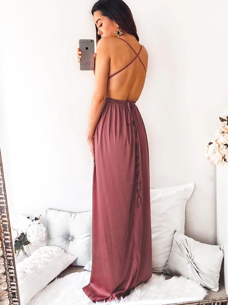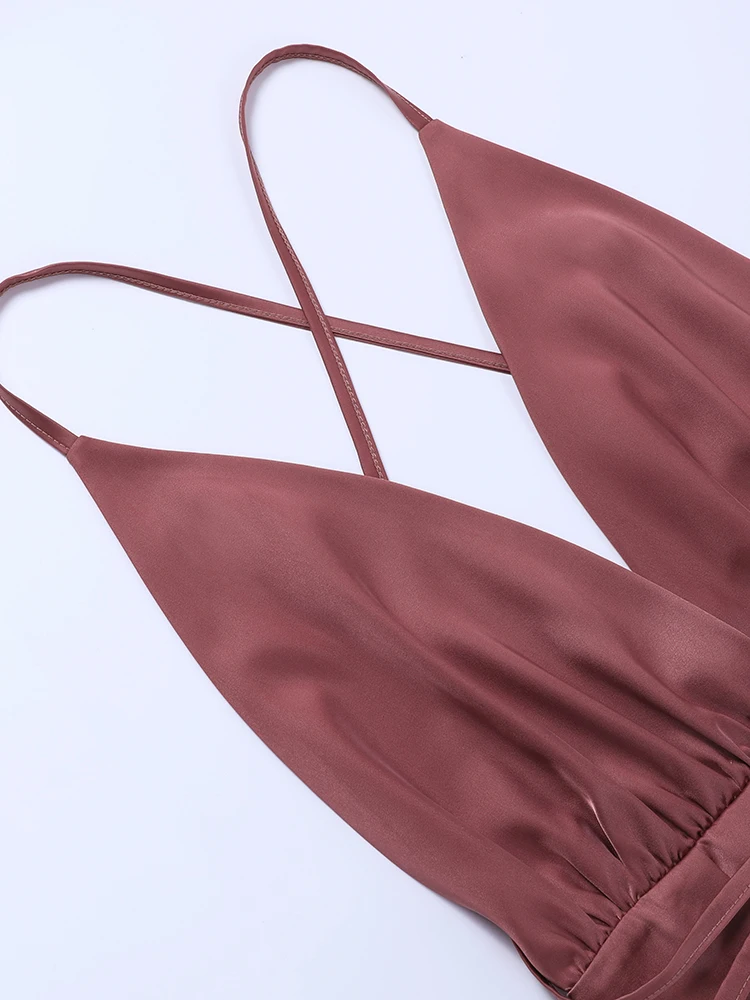 Fleepmart Satin Slit Cami Long Dress Backless Deep V Neck Bandage Summer Sleeveless Sexy Elegant Party Streetwear Female Clothing