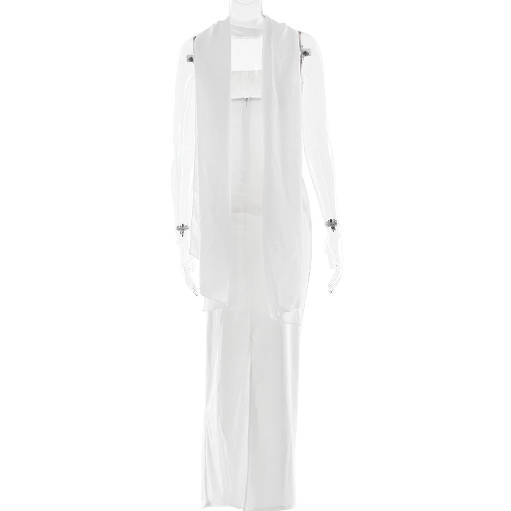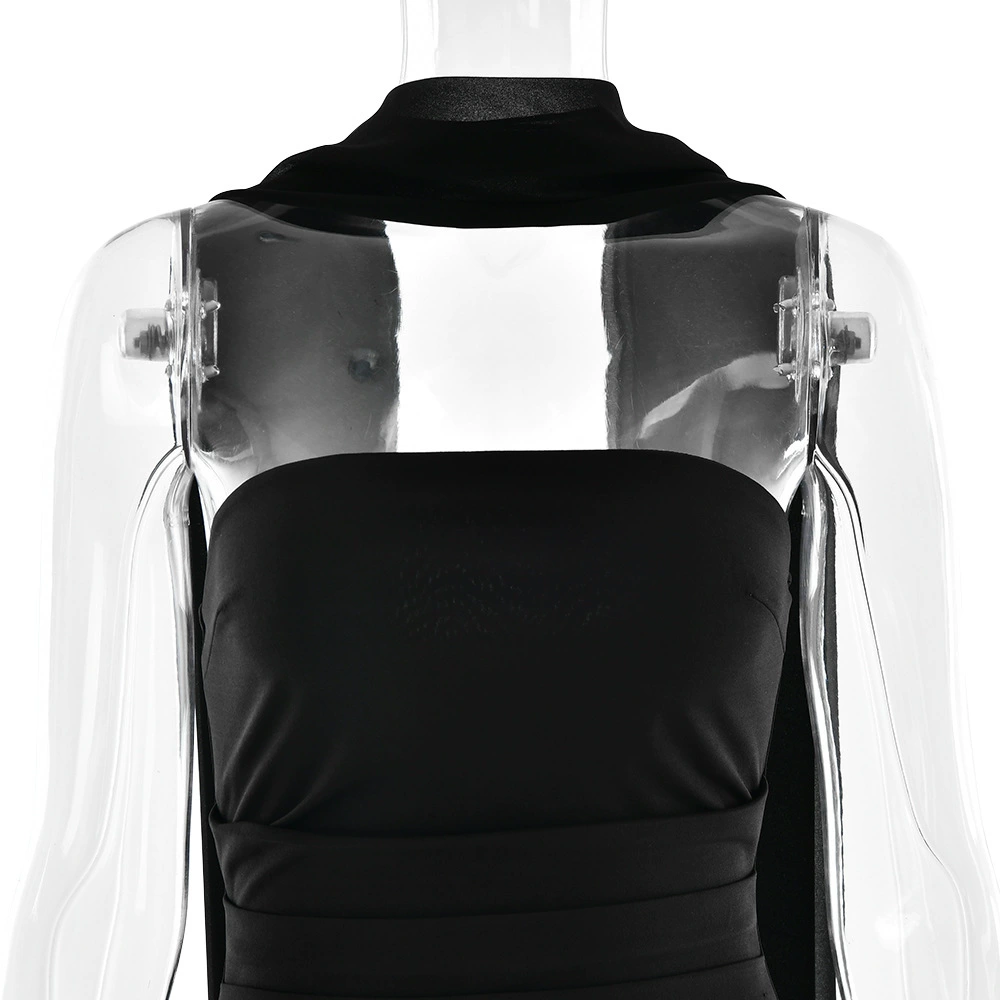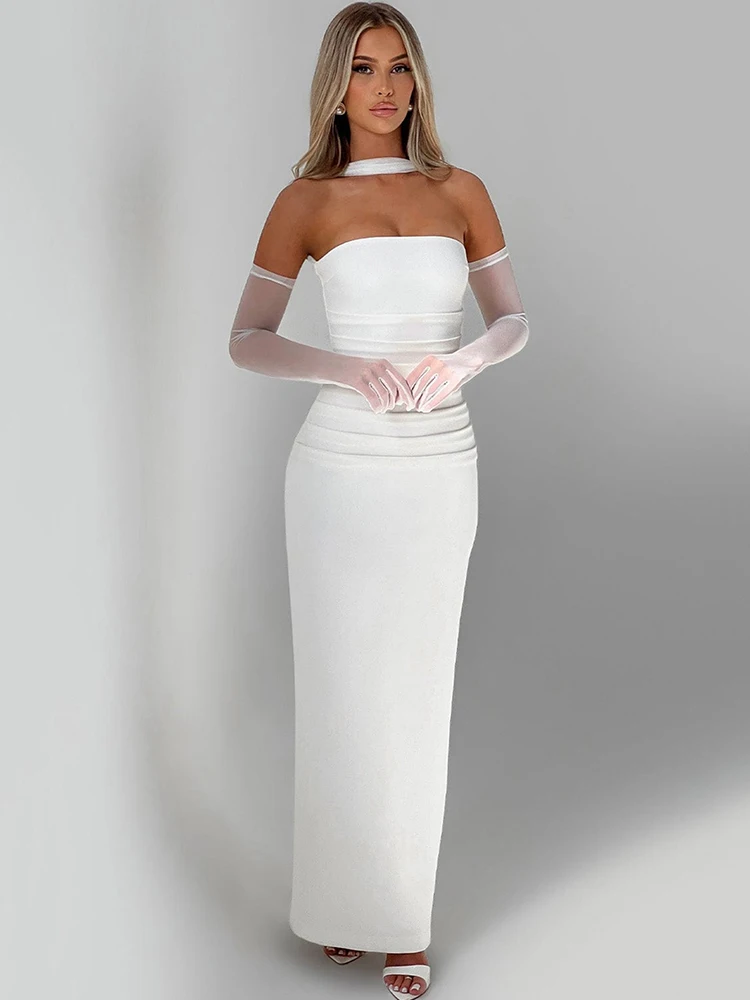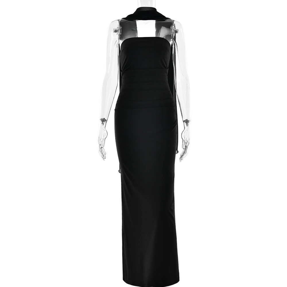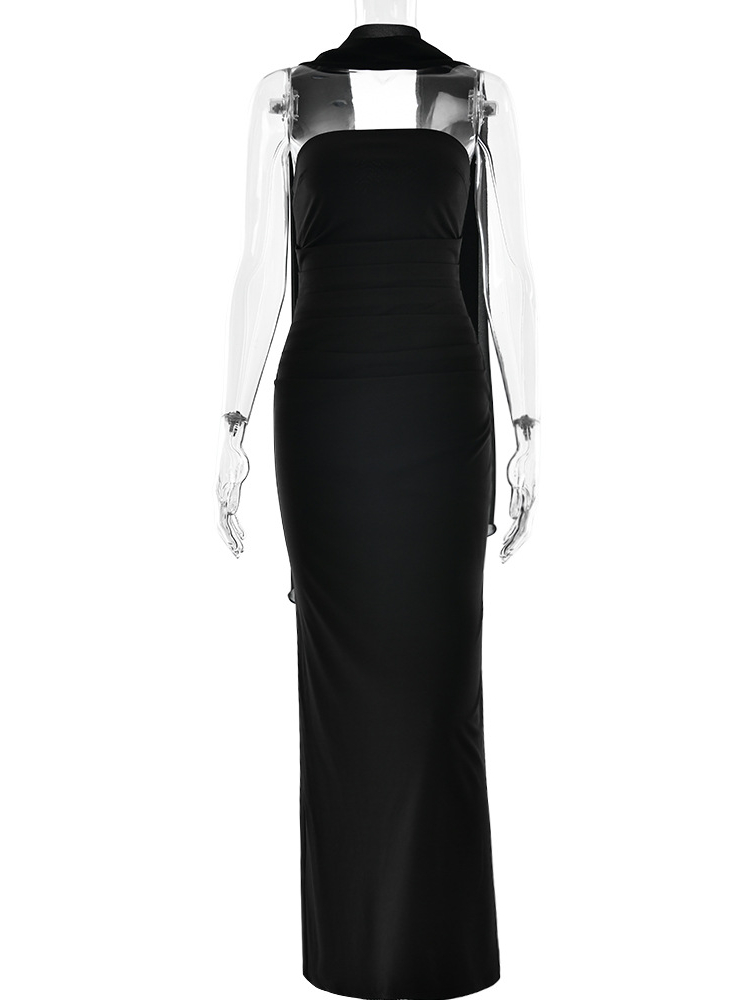 Fleepmart Scarf Collar Strapless Sexy Maxi Dress for Women Fashion Off-shoulder Backless Bodycon Club Party Long Dress Elegant