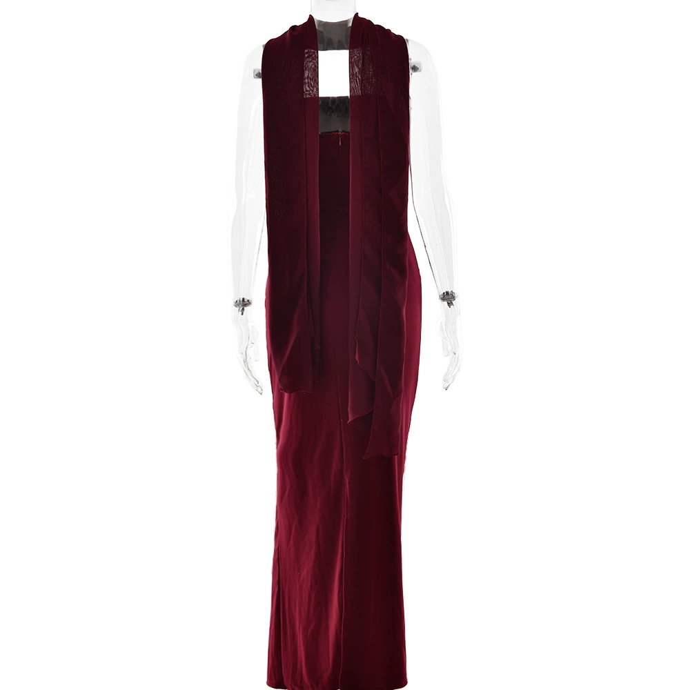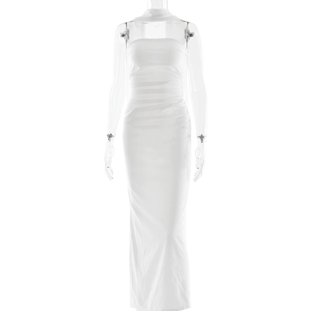 Fleepmart Scarf Collar Strapless Sexy Maxi Dress for Women Fashion Off-shoulder Backless Bodycon Club Party Long Dress Elegant