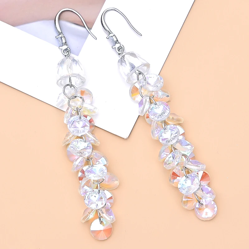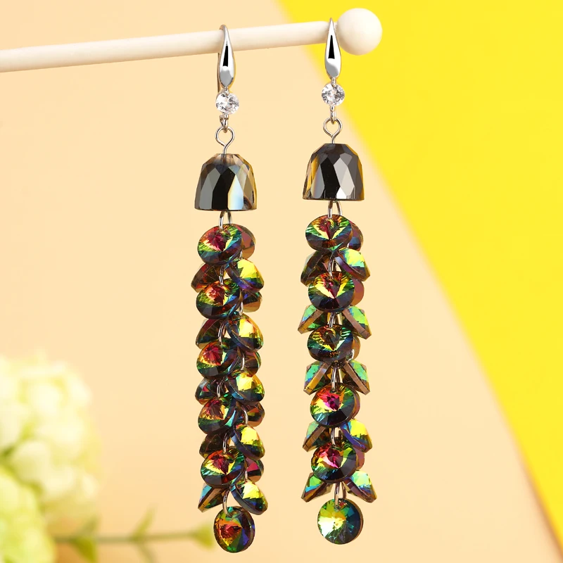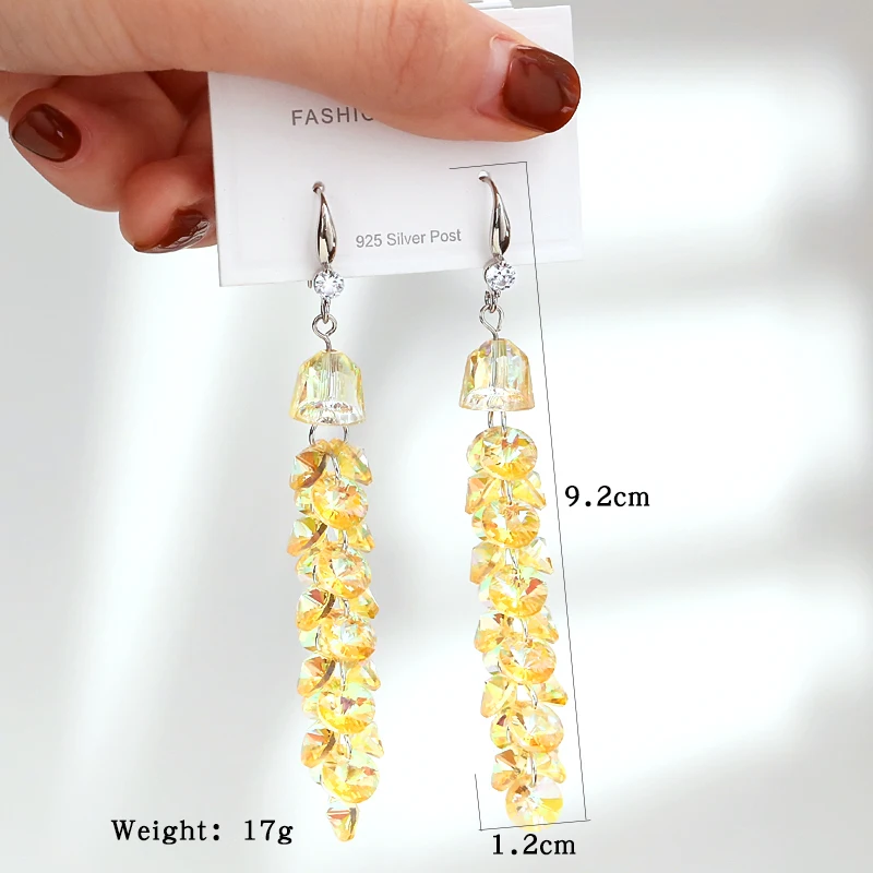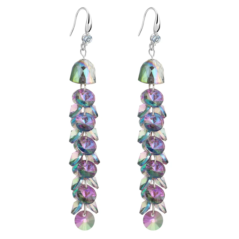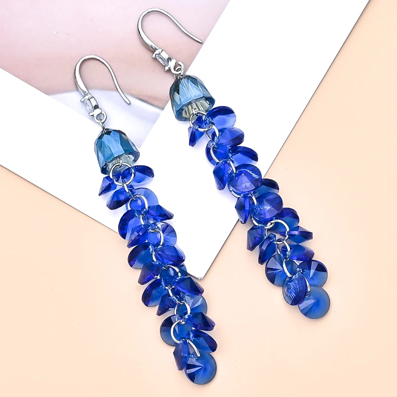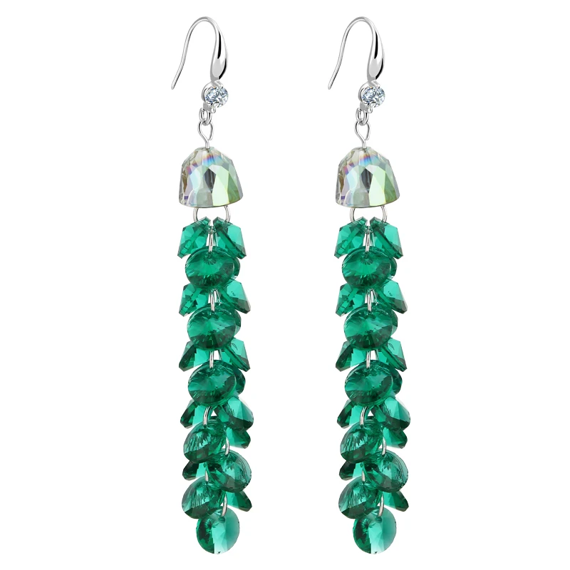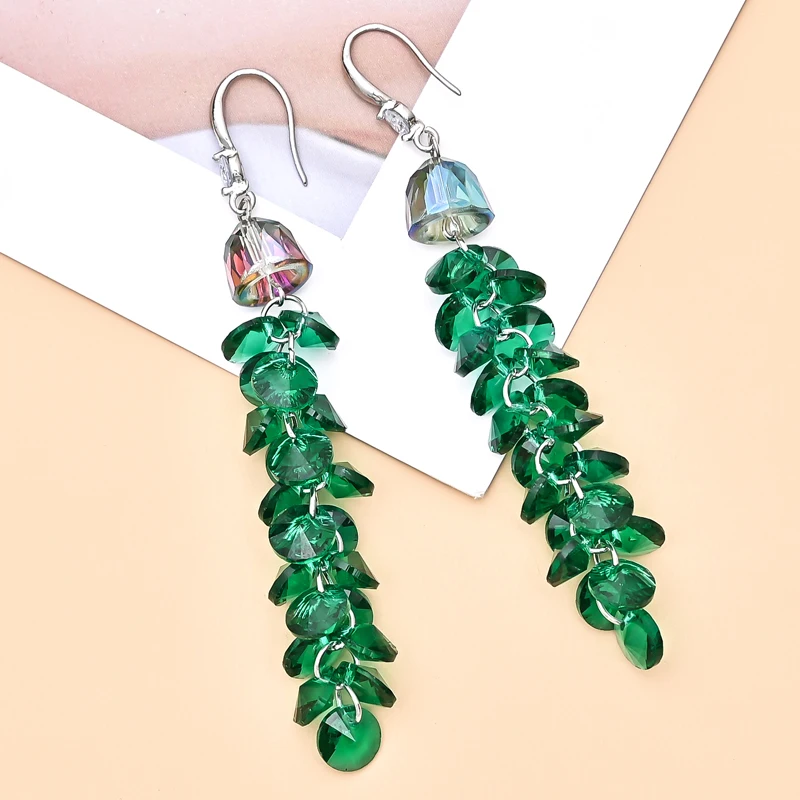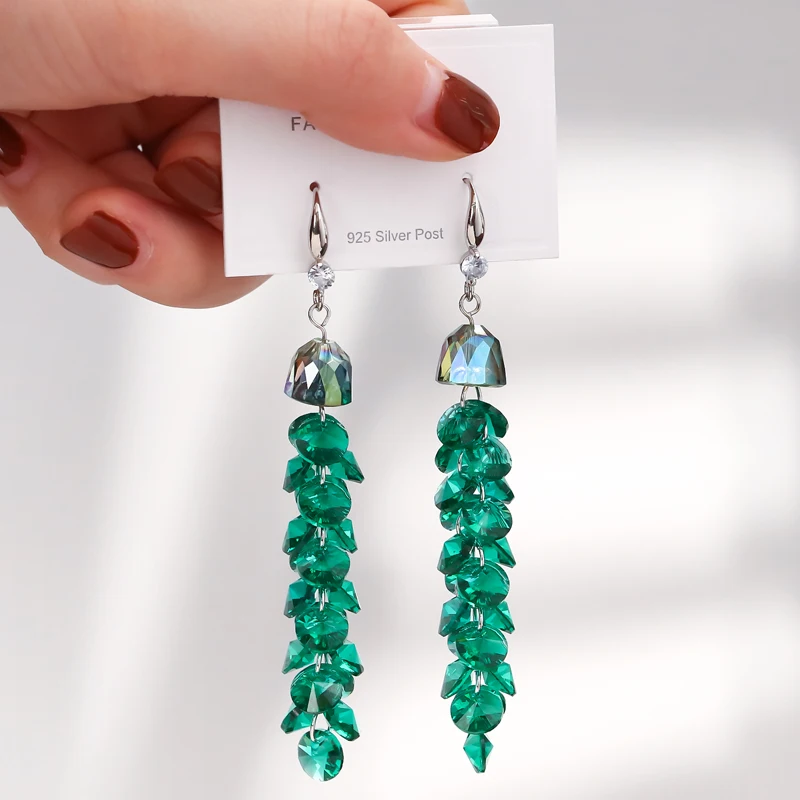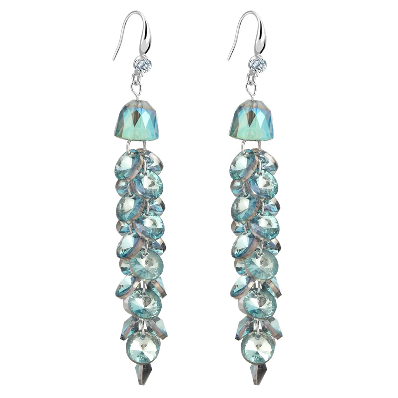 Fleepmart Seablue Green Crystal Bell Style Drop Earrings For Women Party Jewelry French Silver Needle Hook Long Hanging Earrings Gifts