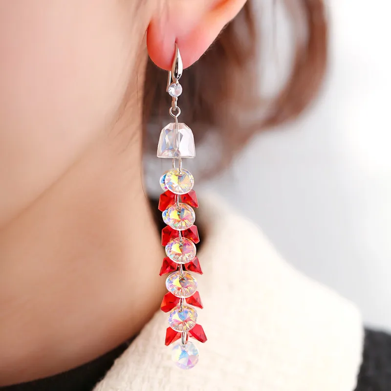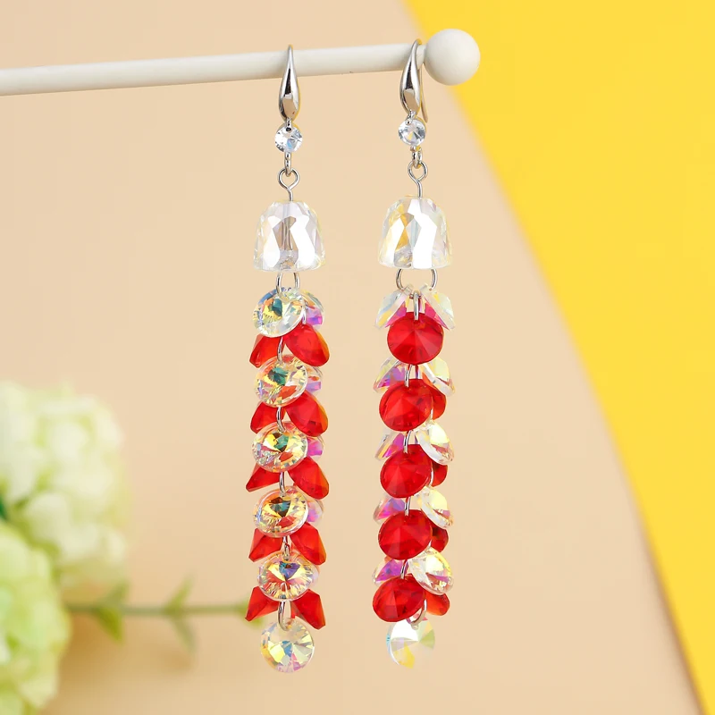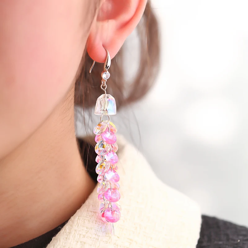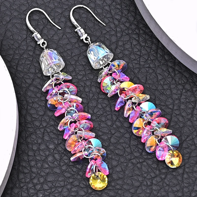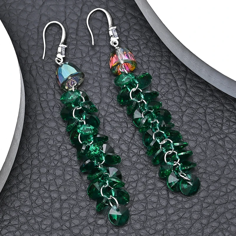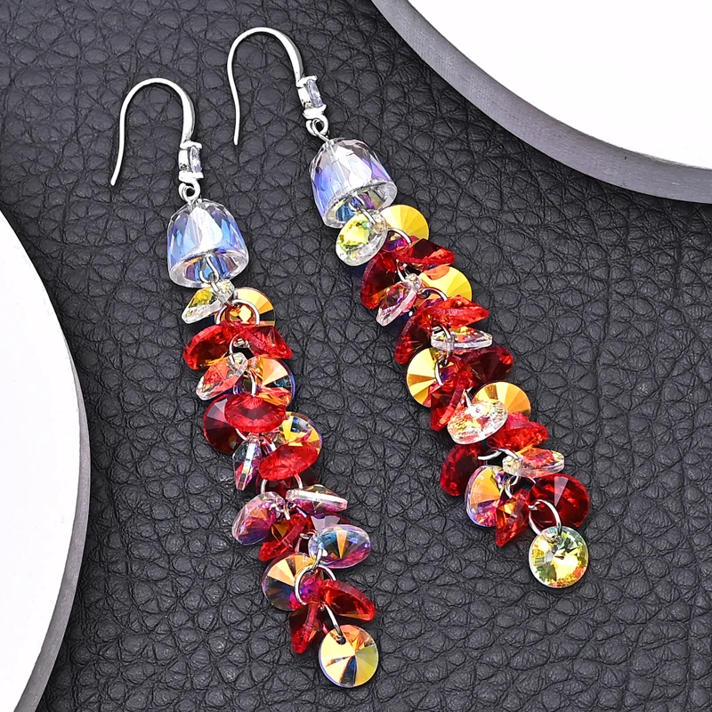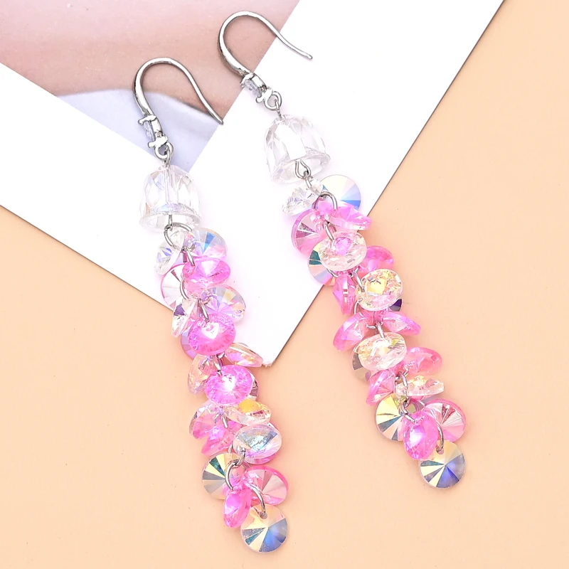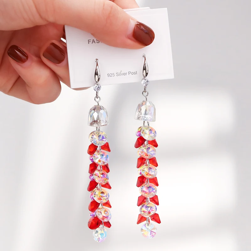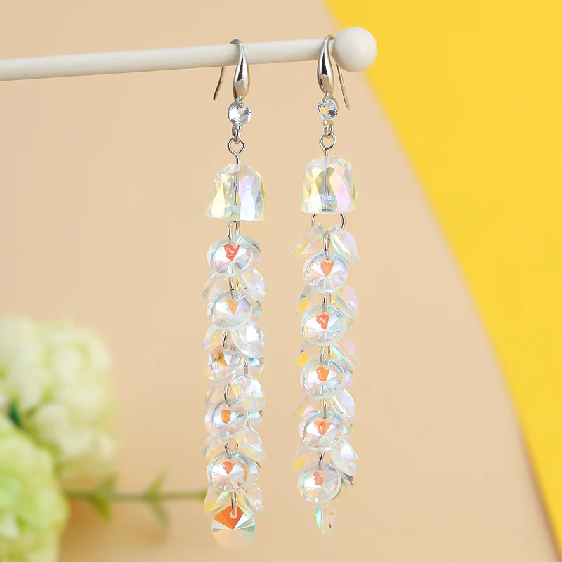 Fleepmart Seablue Green Crystal Bell Style Drop Earrings For Women Party Jewelry French Silver Needle Hook Long Hanging Earrings Gifts