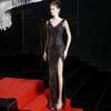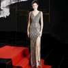 Fleepmart evening dresses 2024 colorful mermaid elastic sequin v-neck party dress sexy split long prom gown Customized