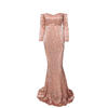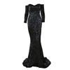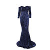 Fleepmart Sequined Off The Shoulder Maxi Dresses Floor Length Party Dresses Champagne Gold Navy Blue