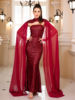 fleepmart Sequined Strapless Evening Maxi Dress Chiffon Flying Sleeve Luxury Halter Backless Prom Gown for WomenThere are no reviews yet
