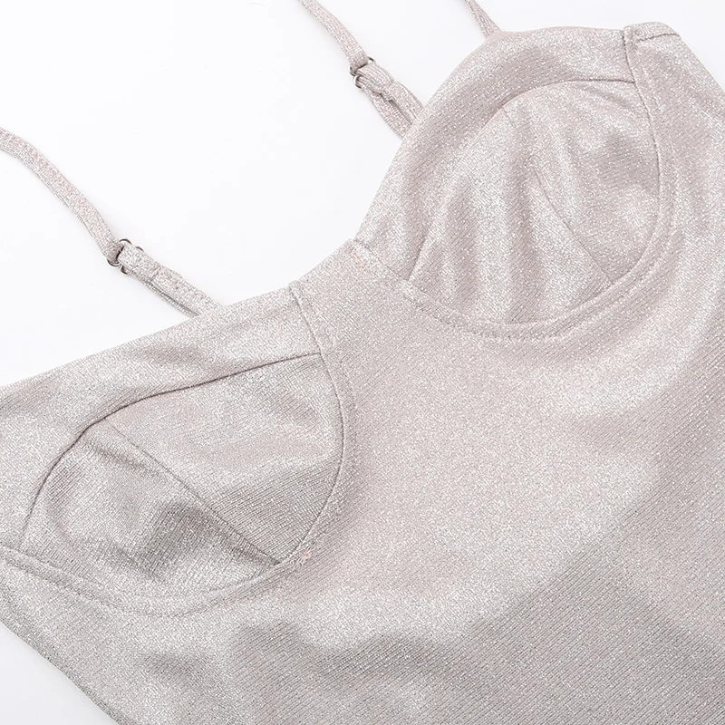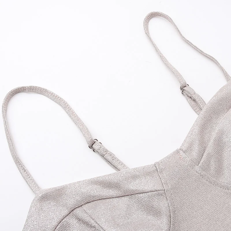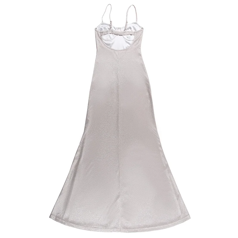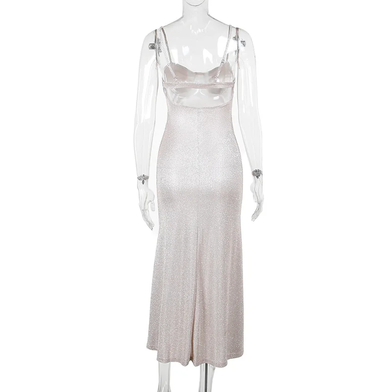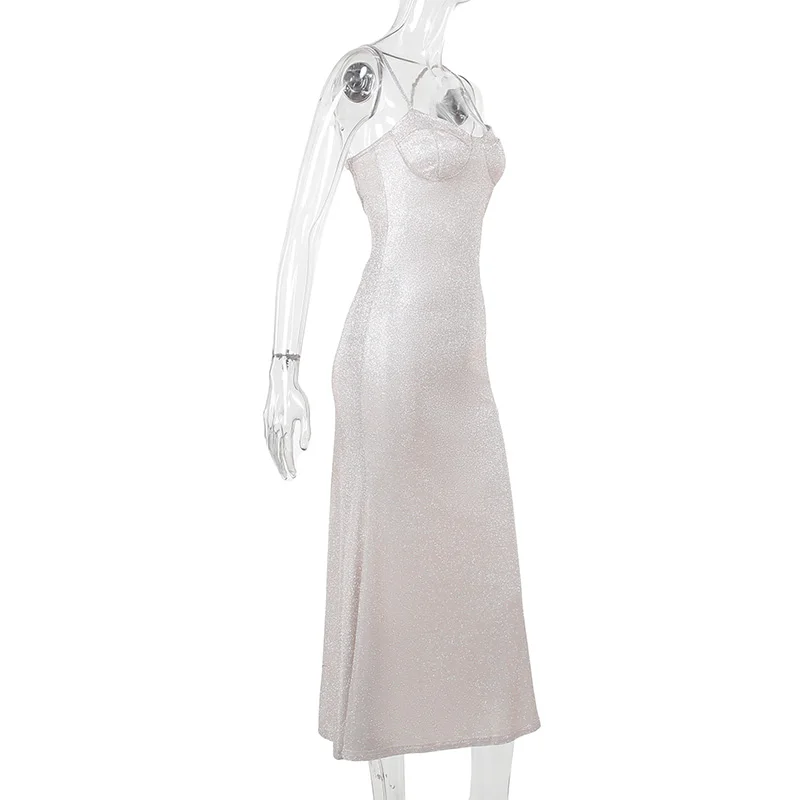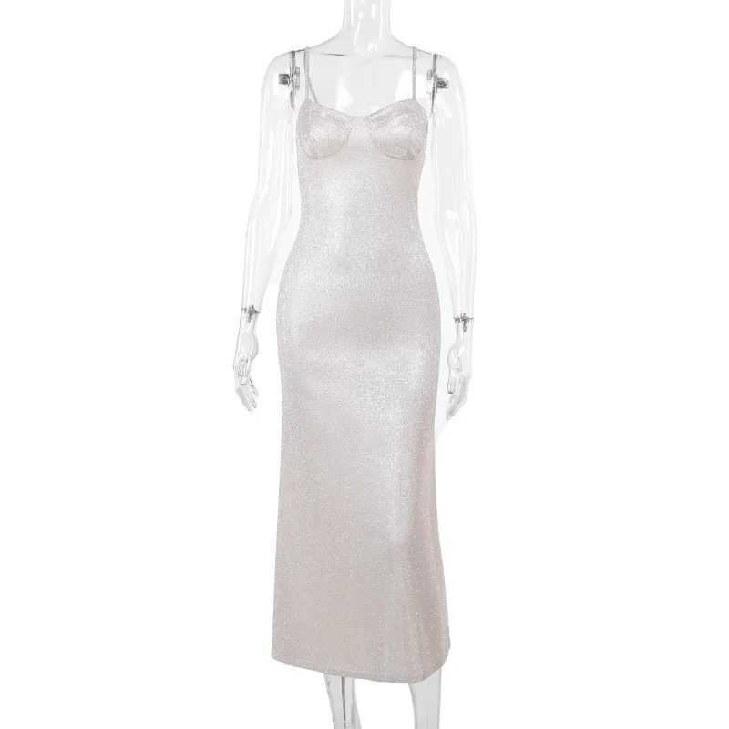 Fleepmart Sequins Wrap Bust Sleeveless Bodycon Slip Dress Women Sexy Backless Bright silk Spaghetti Strap Slim Long Dress