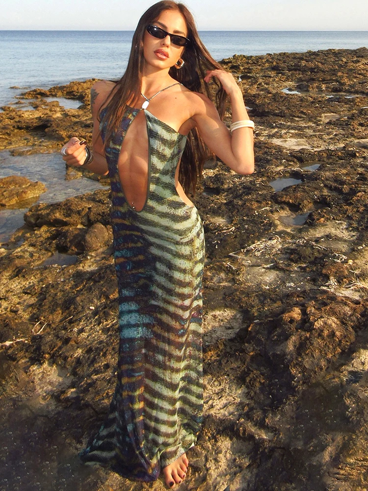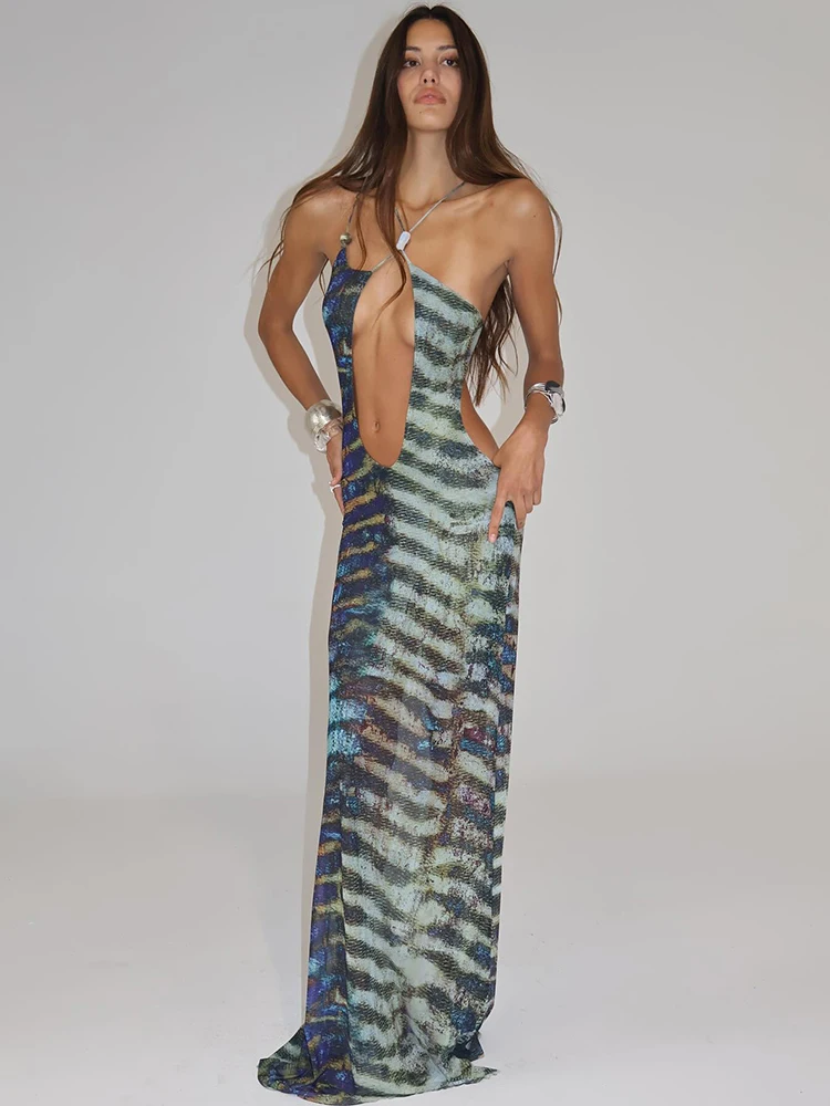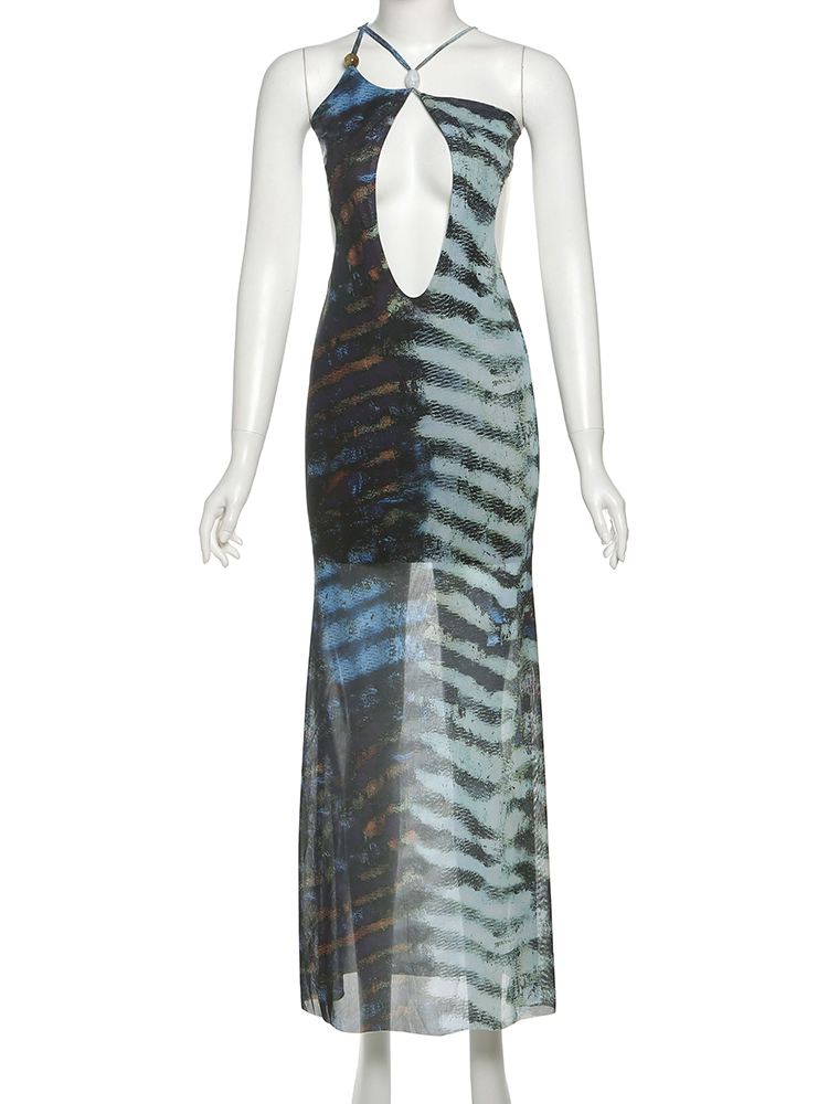 Fleepmart Serpentine Sexy Dress Women Patchwork Mesh Hem Cross Straps Sleeveless Backless Midnight Party Sexy Clubwear Vestidos
