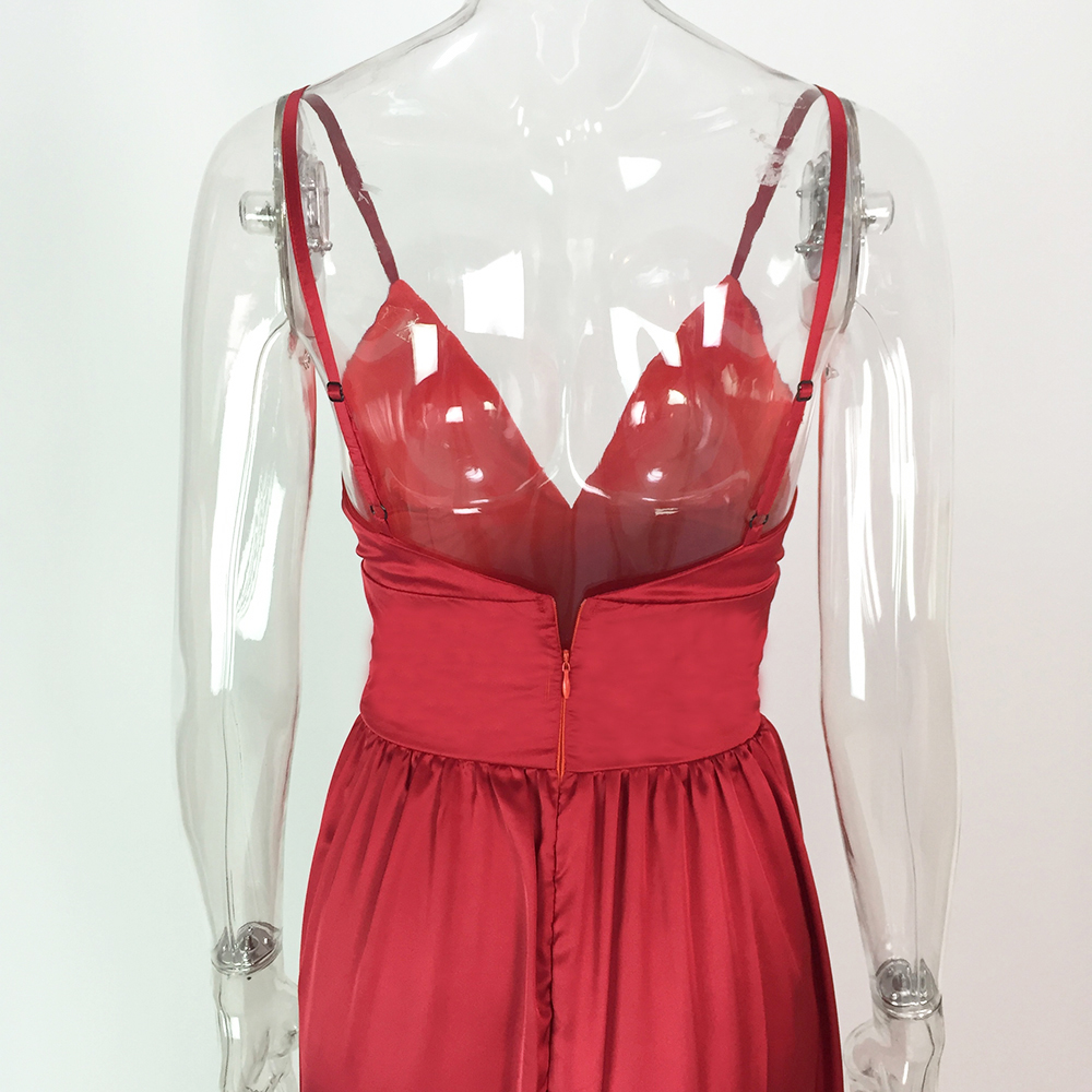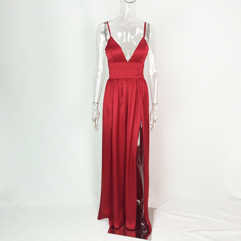 Fleepmart Sexy 2 Legs Split Women’s Dress Satin Evening Party Sleeveless V Neck Padded Straps Backless Red Green Navy Blue Summer