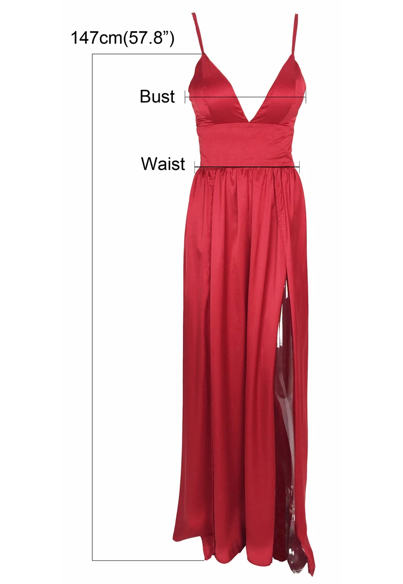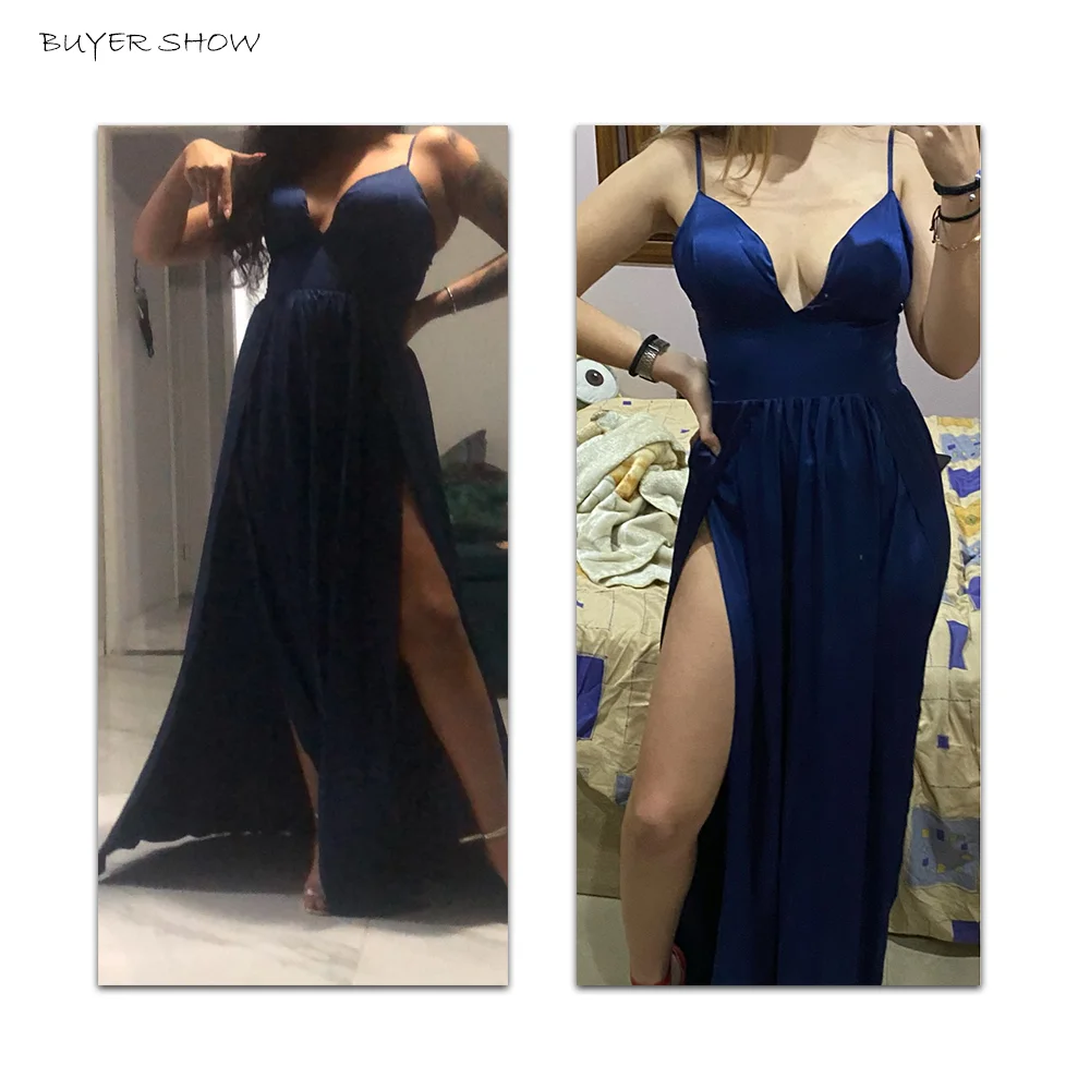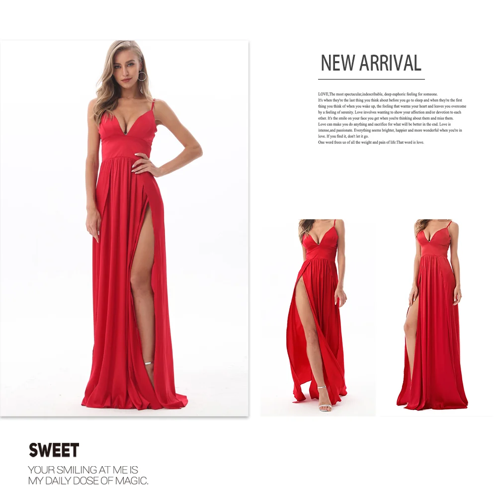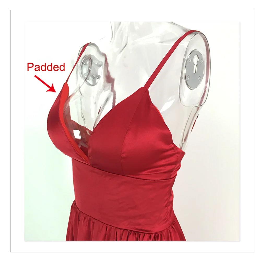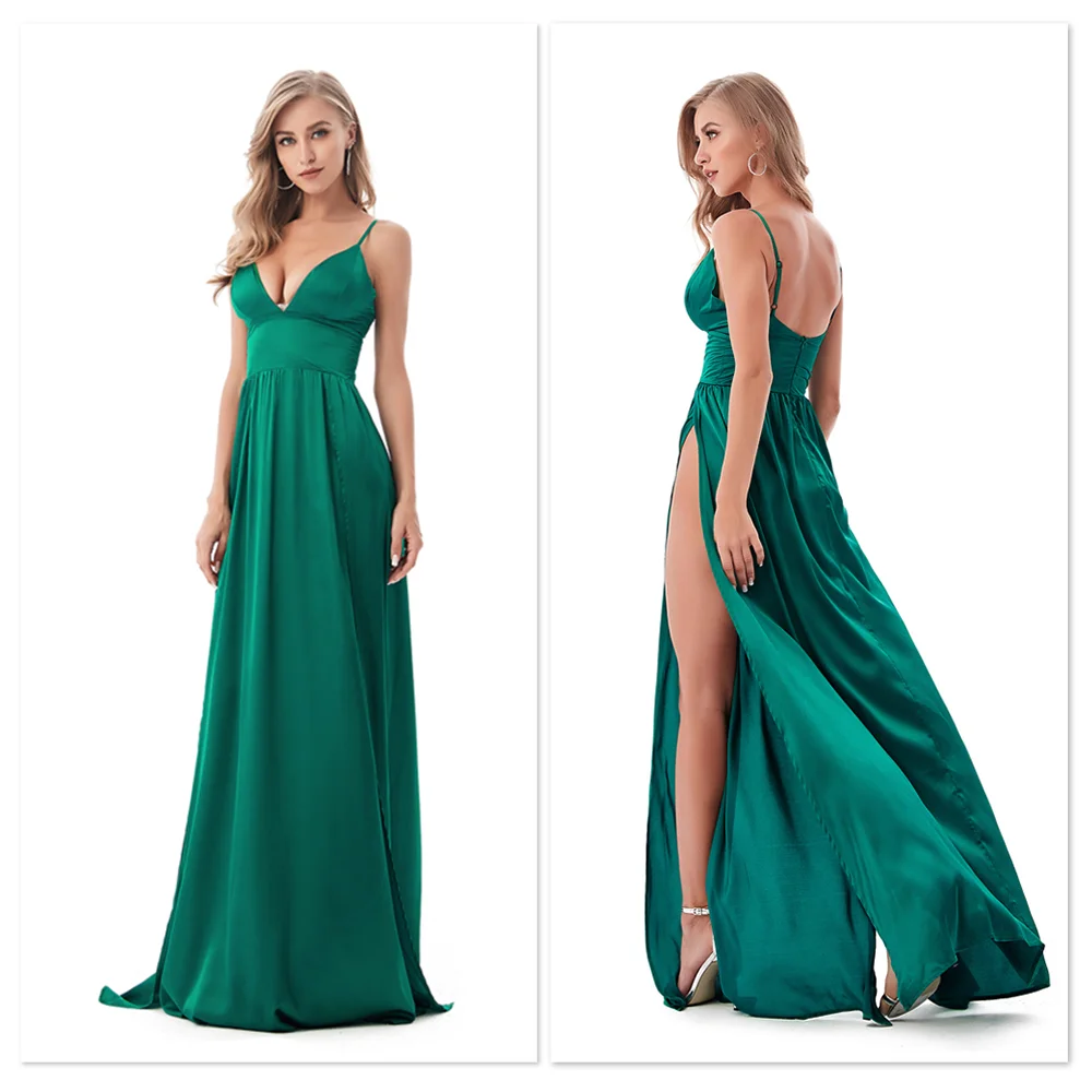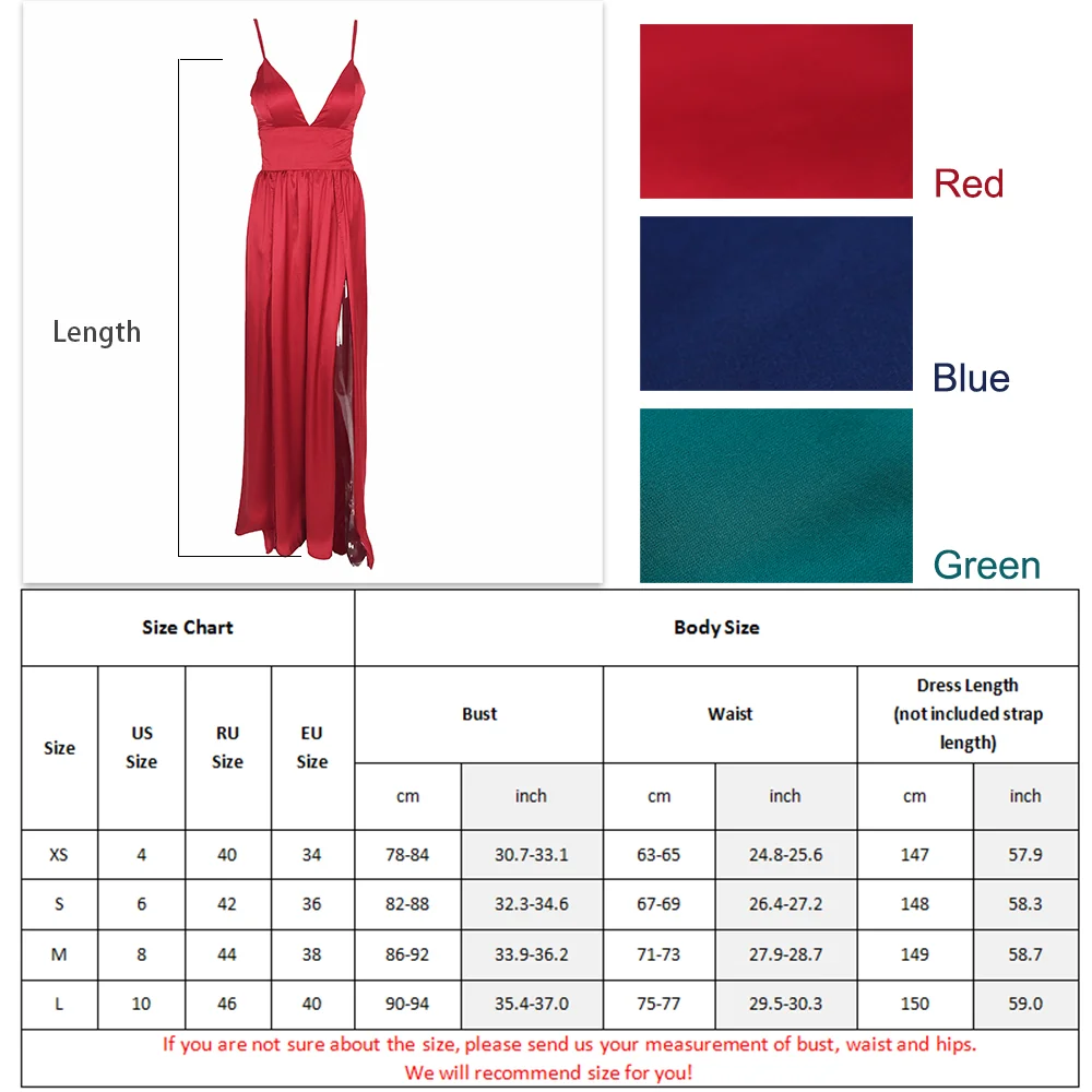 Fleepmart Sexy 2 Legs Split Women’s Dress Satin Evening Party Sleeveless V Neck Padded Straps Backless Red Green Navy Blue Summer