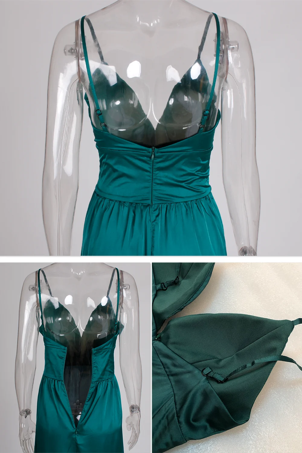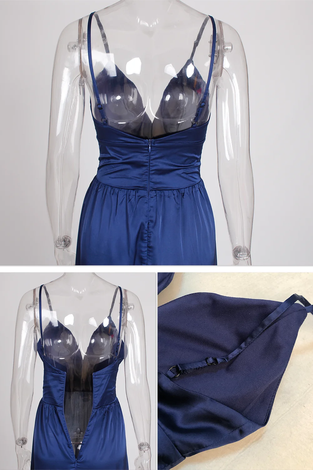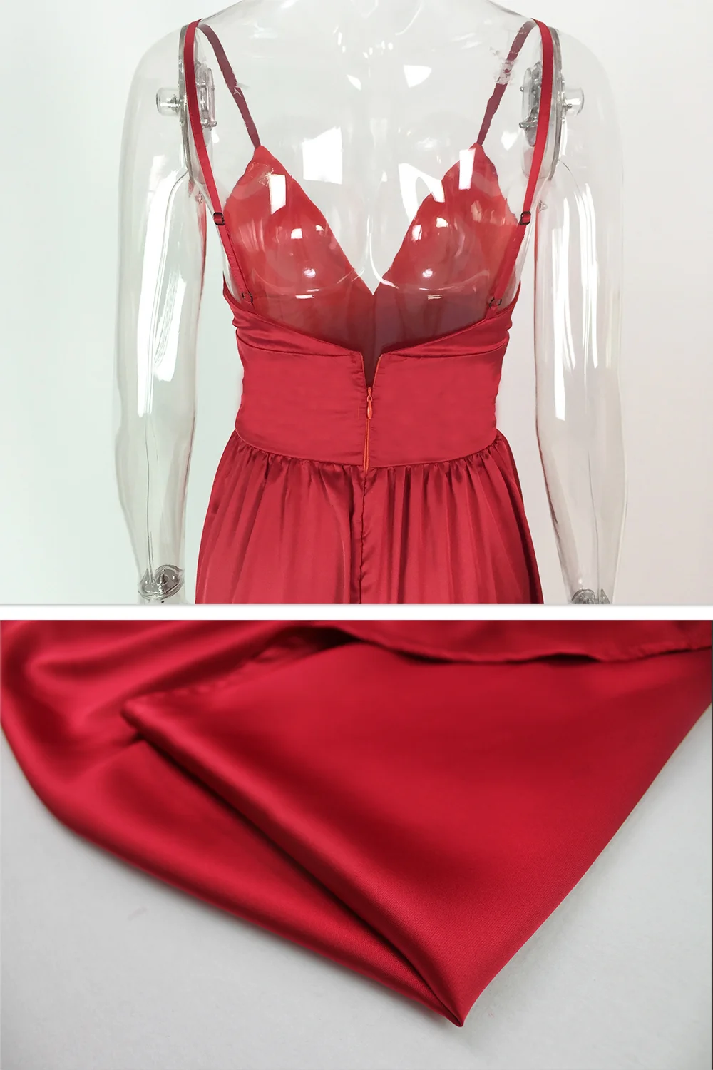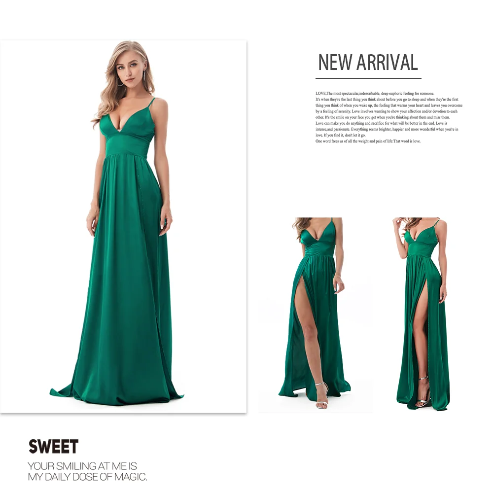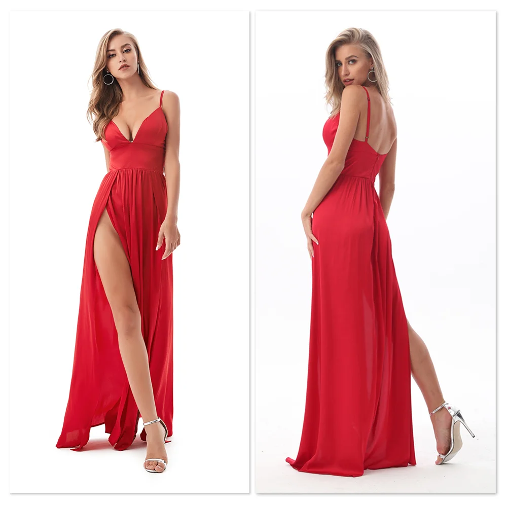 Fleepmart Sexy 2 Legs Split Women’s Dress Satin Evening Party Sleeveless V Neck Padded Straps Backless Red Green Navy Blue Summer
