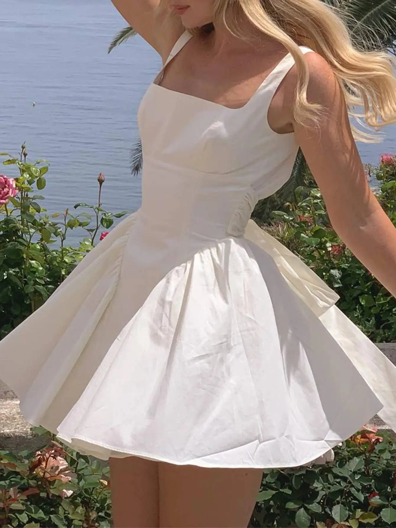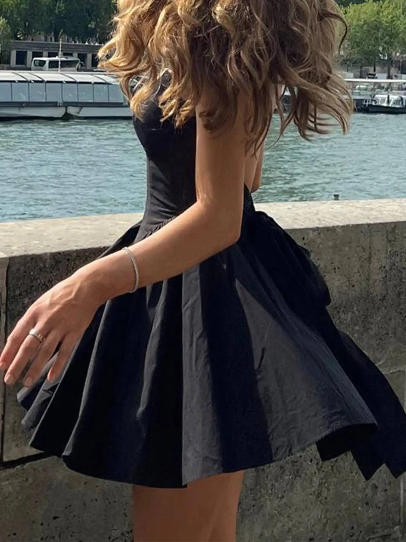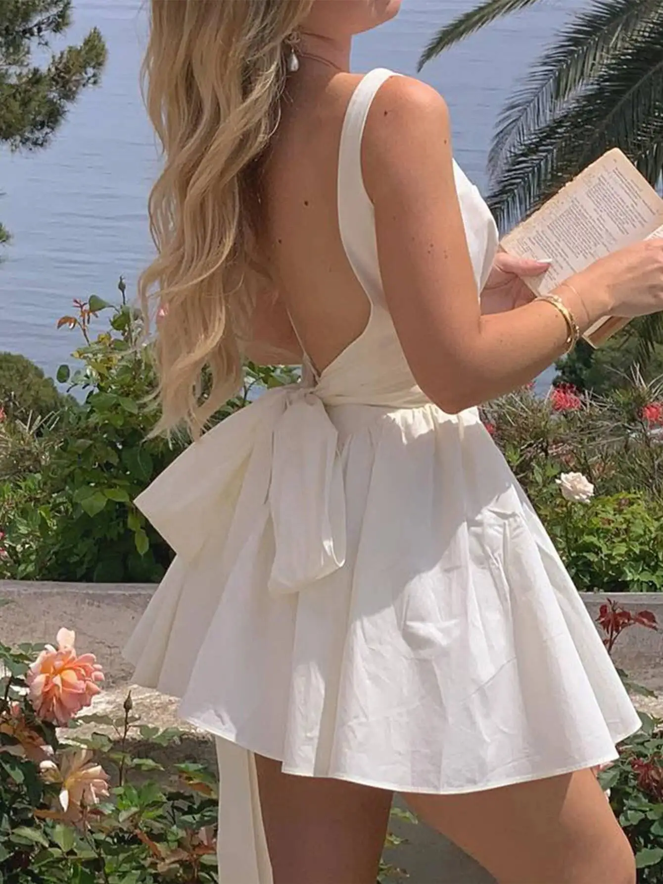 Fleepmart Sexy backless bow black white summer dress women elegant birthday party dresses 2025 woman prom evening short dresses vestidos