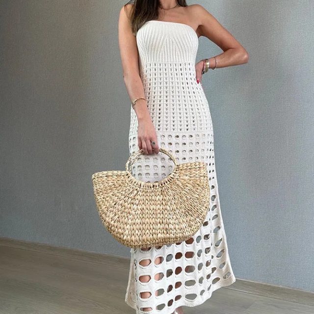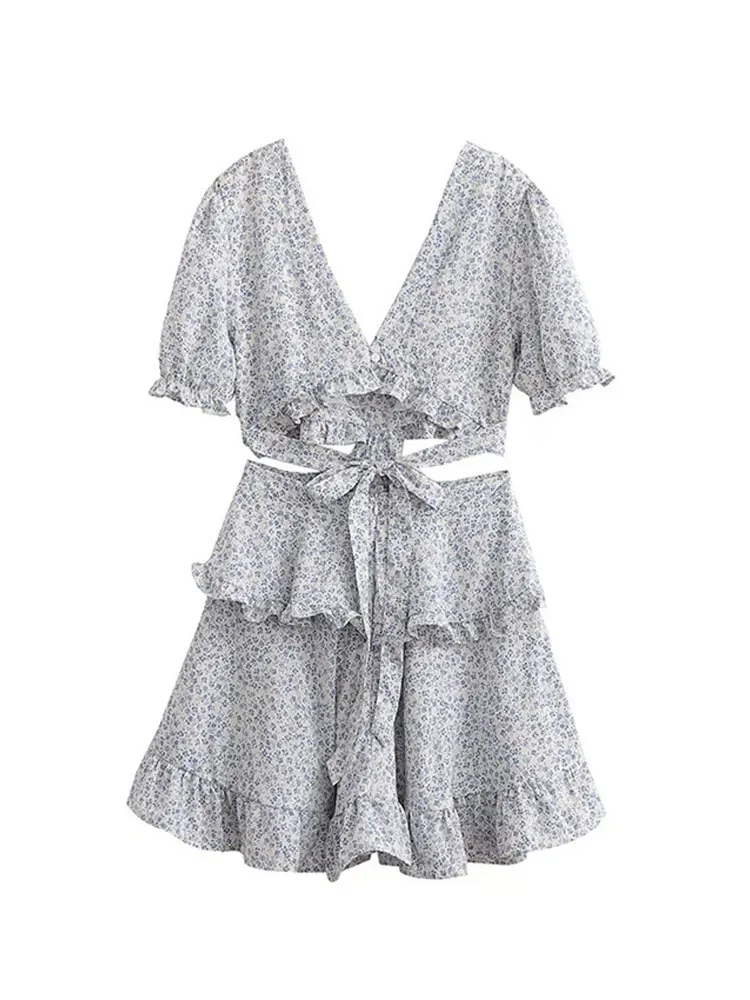 fleepmart Sexy Backless Lacing Hollow Out Long Dress Women Summer 2022 Elegant Romantic Blue Maxi Dress Beach Sash Holiday