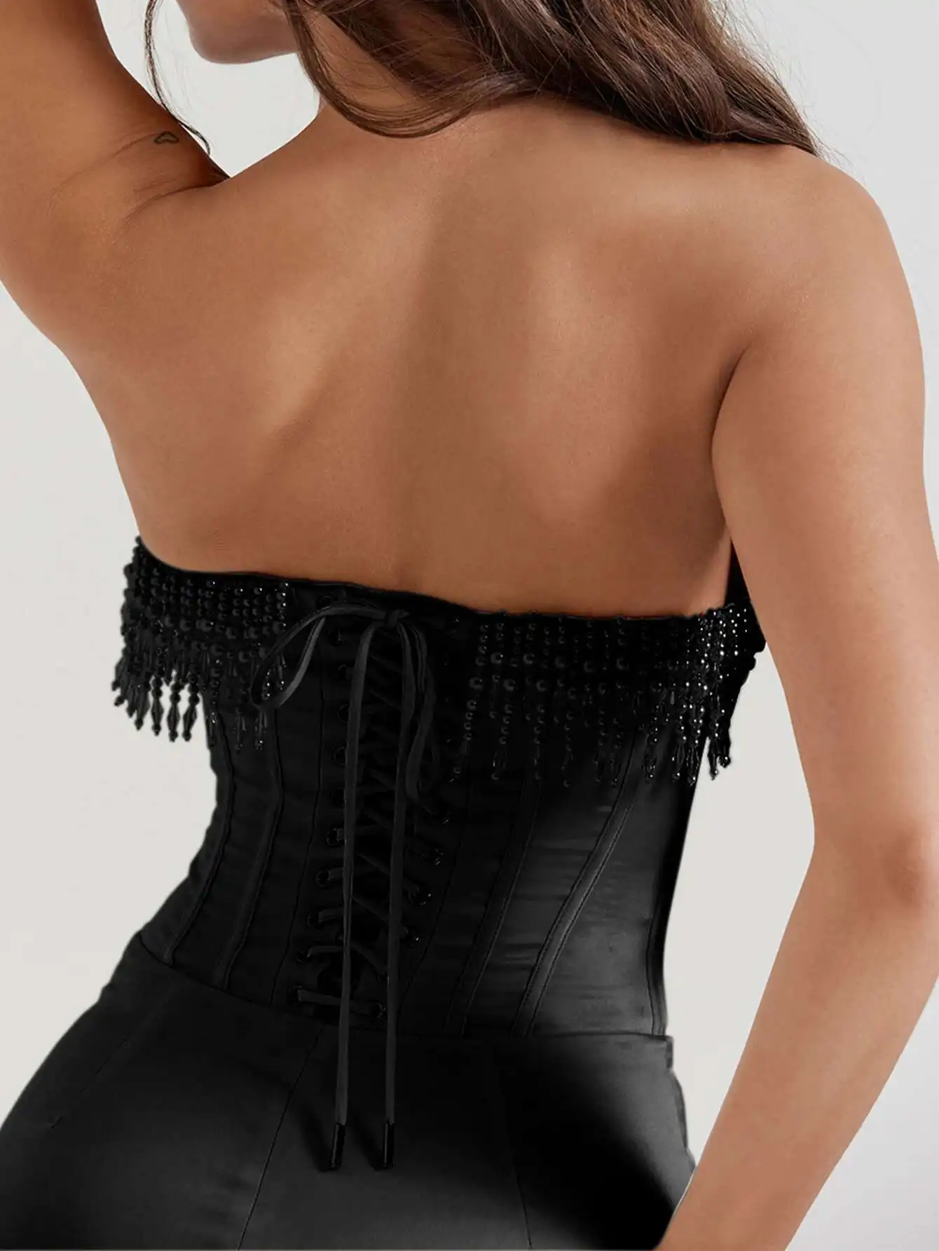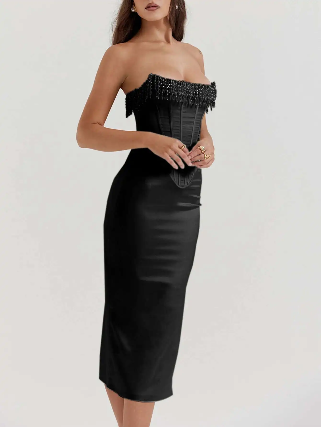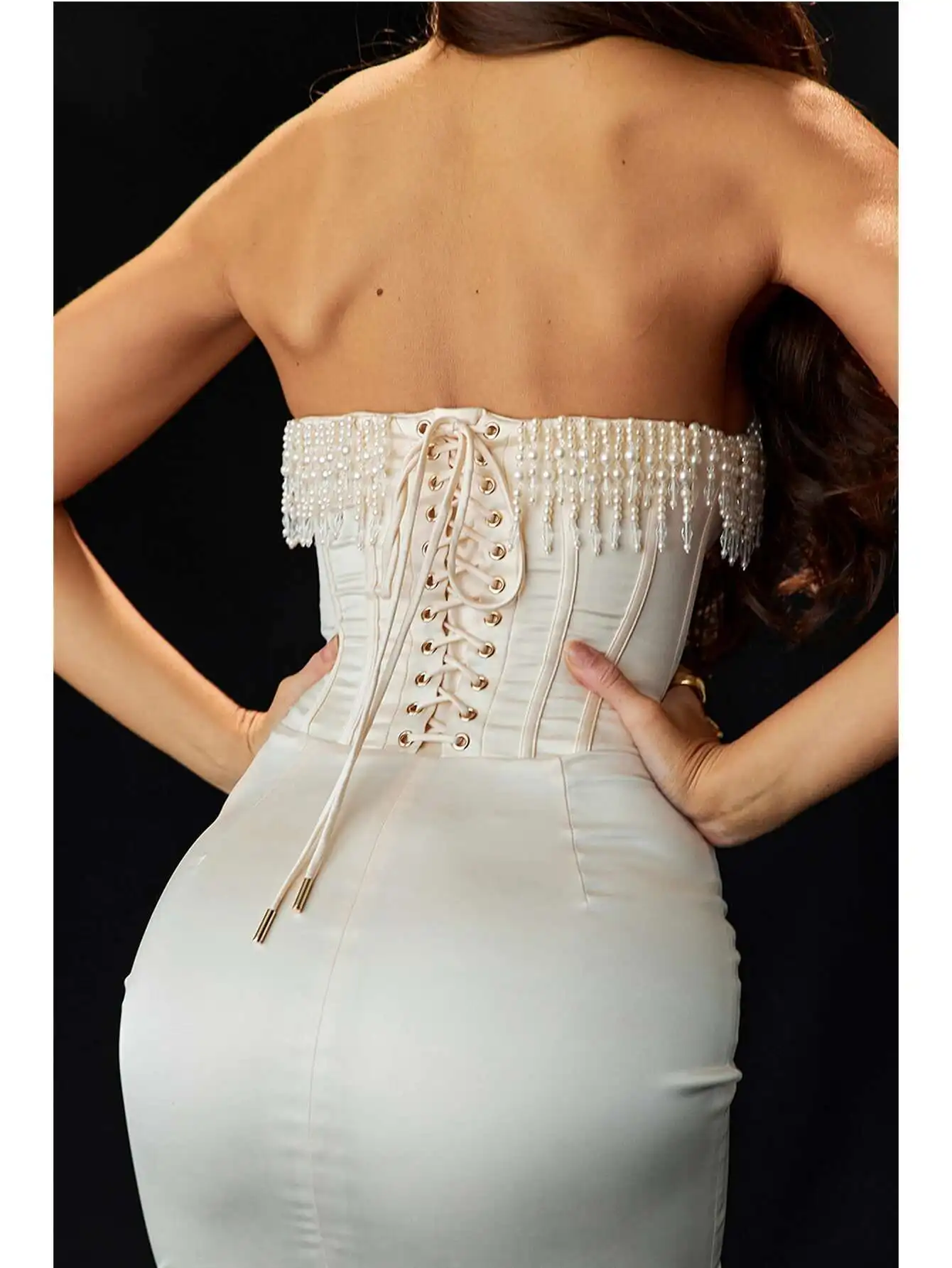Fleepmart Sexy backless pearl white summer dress women elegant bodycon cocktail midi party dresses woman birthday evening dress vestidos