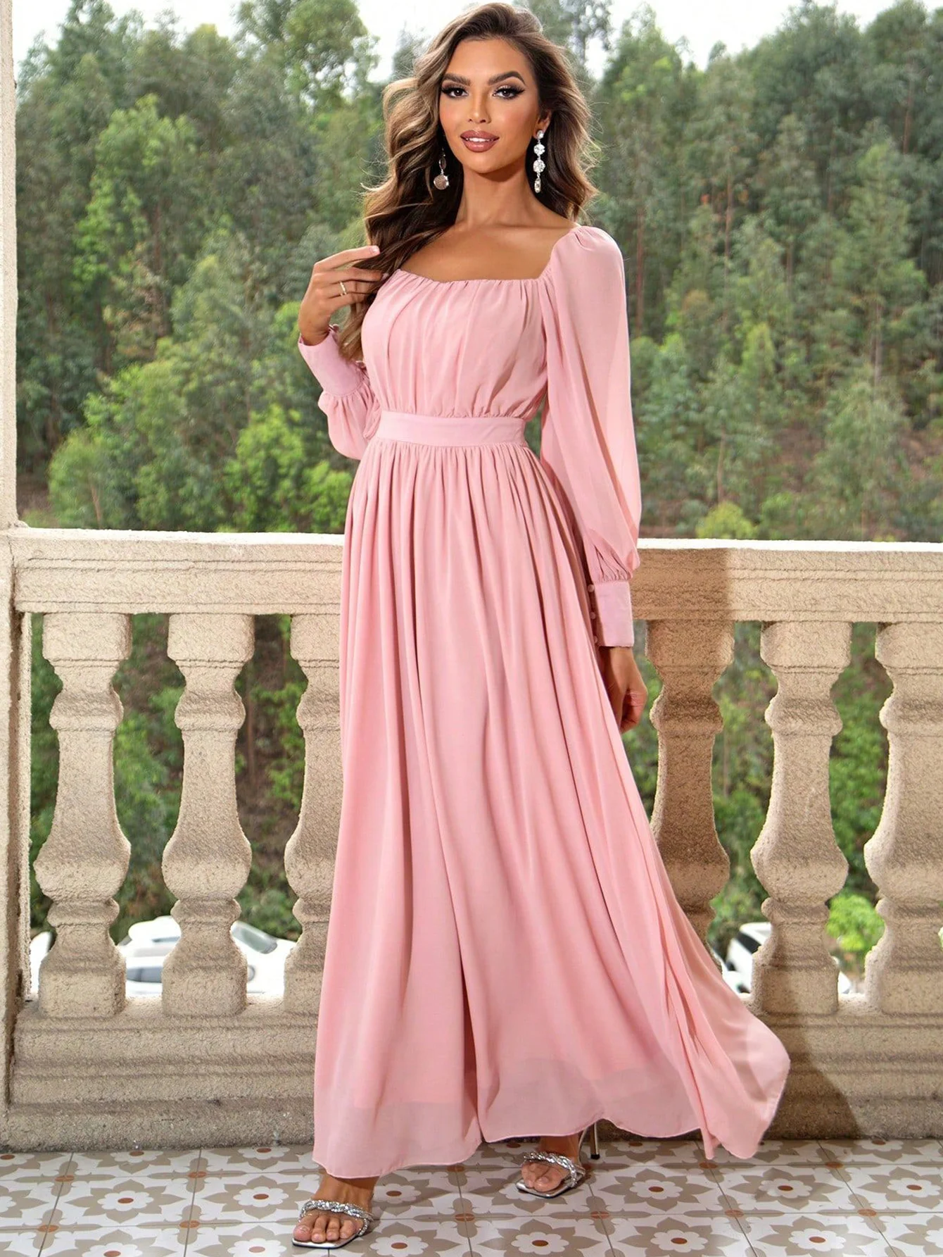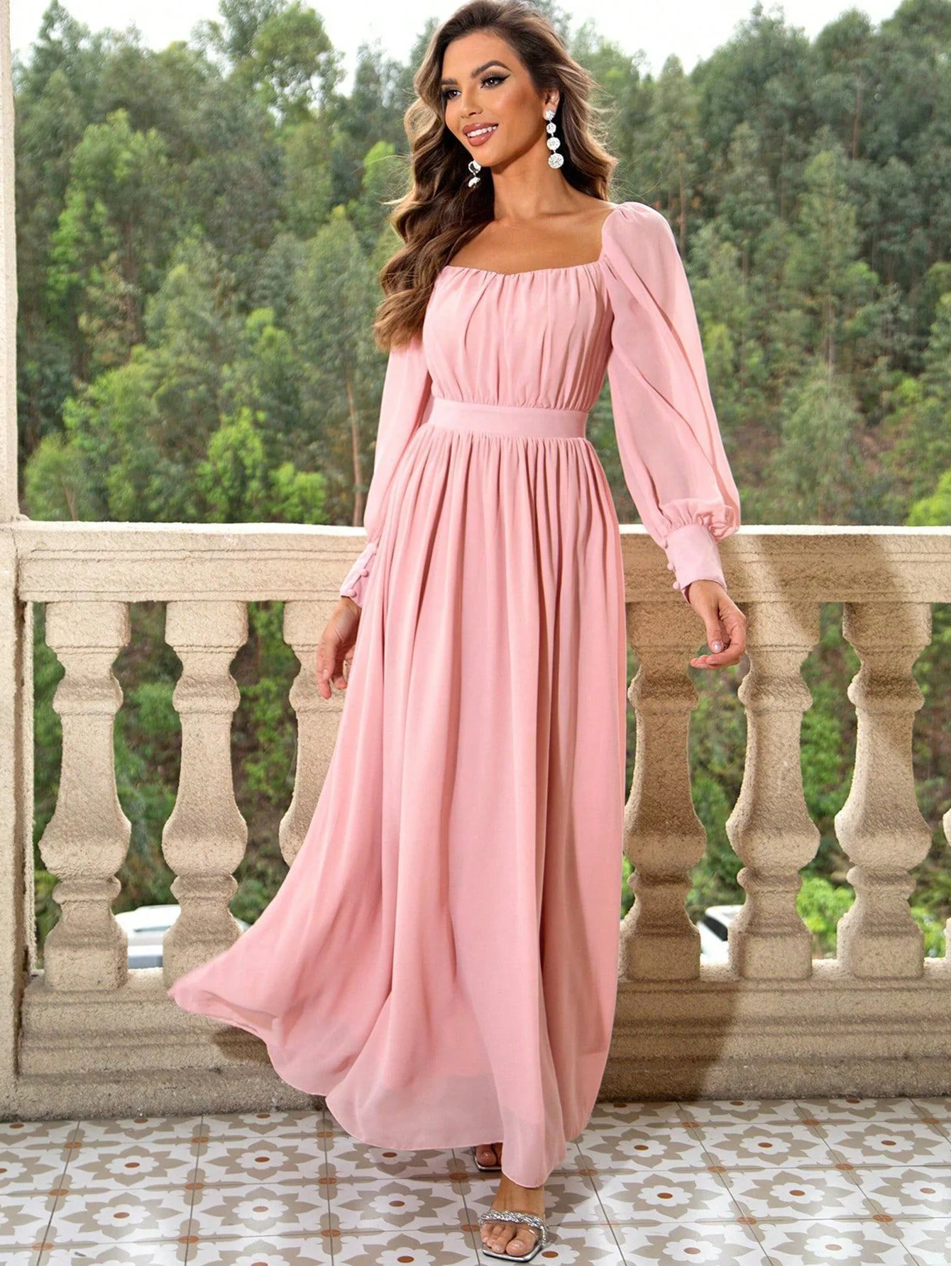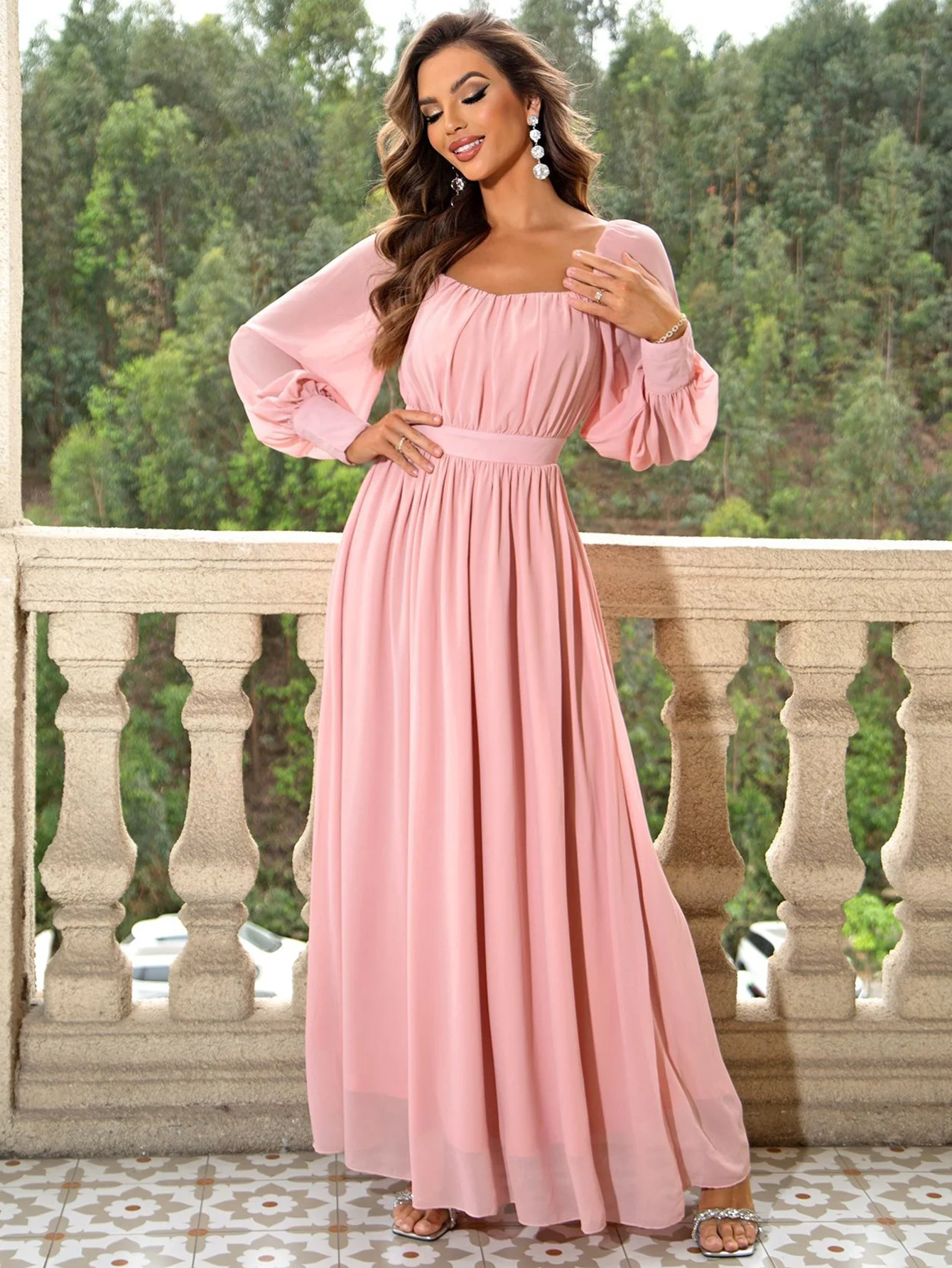 Fleepmart Sexy backless pink maxi chiffon summer dress women 2024 elegant birthday party dress long sleeve prom evening dresses vestidos