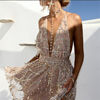 Fleepmart Sexy backless vintage mesh Sequin mini summer dress women club beach bodycon party dress elegant evening prom dresses vestidos