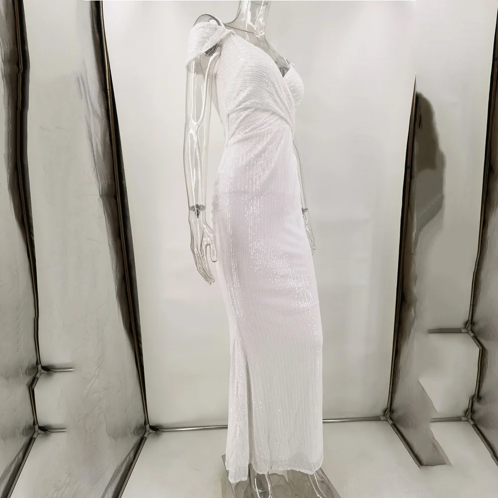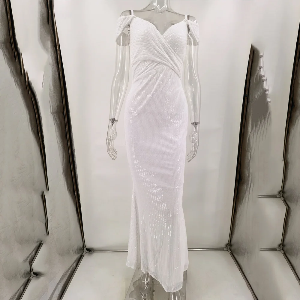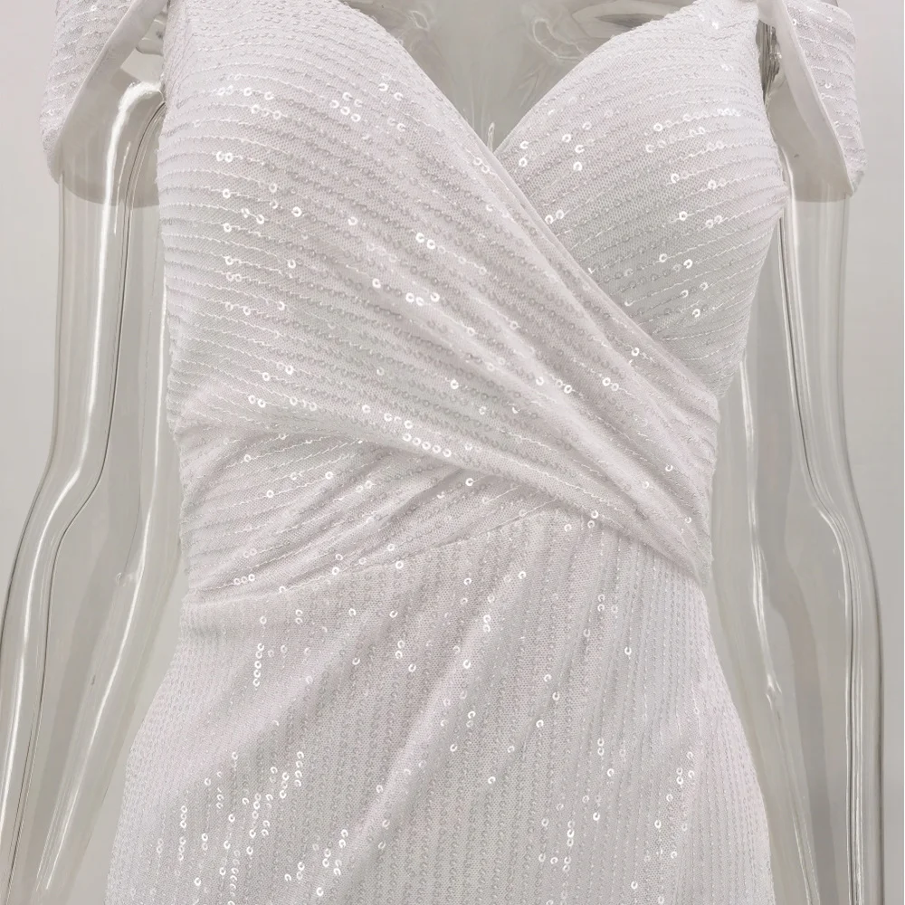 Fleepmart Sexy backless white Sequin maxi summer party dress women off shoulder corset woman long dress cocktail evening dresses vestidos
